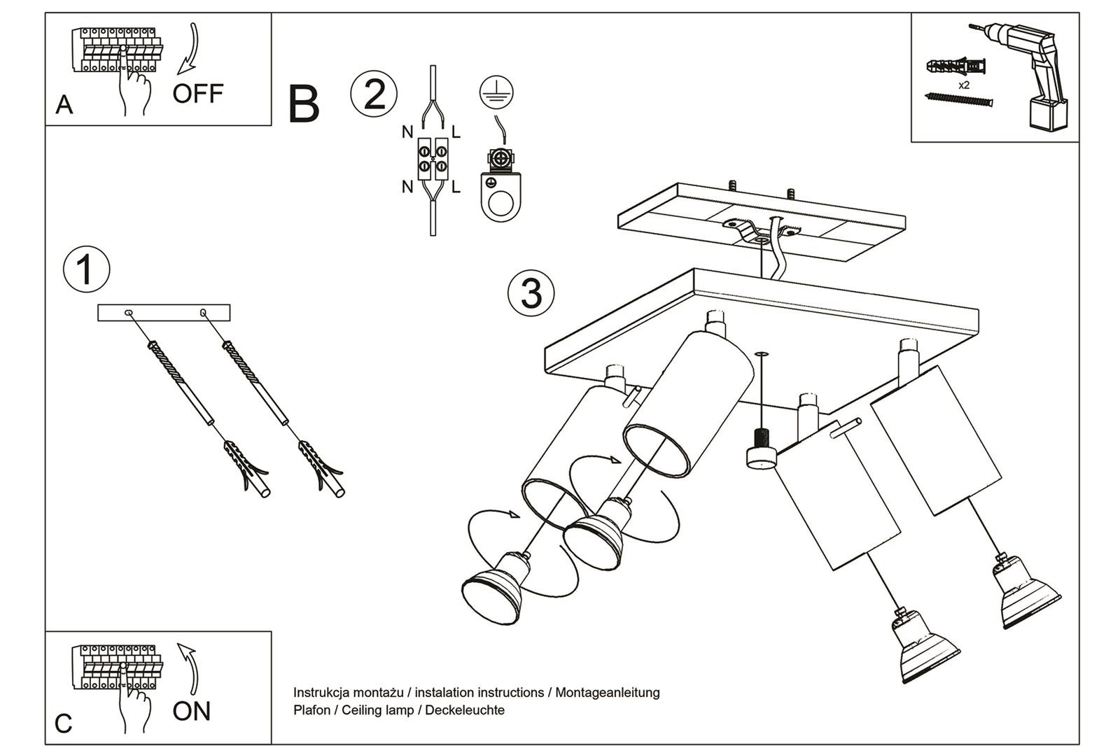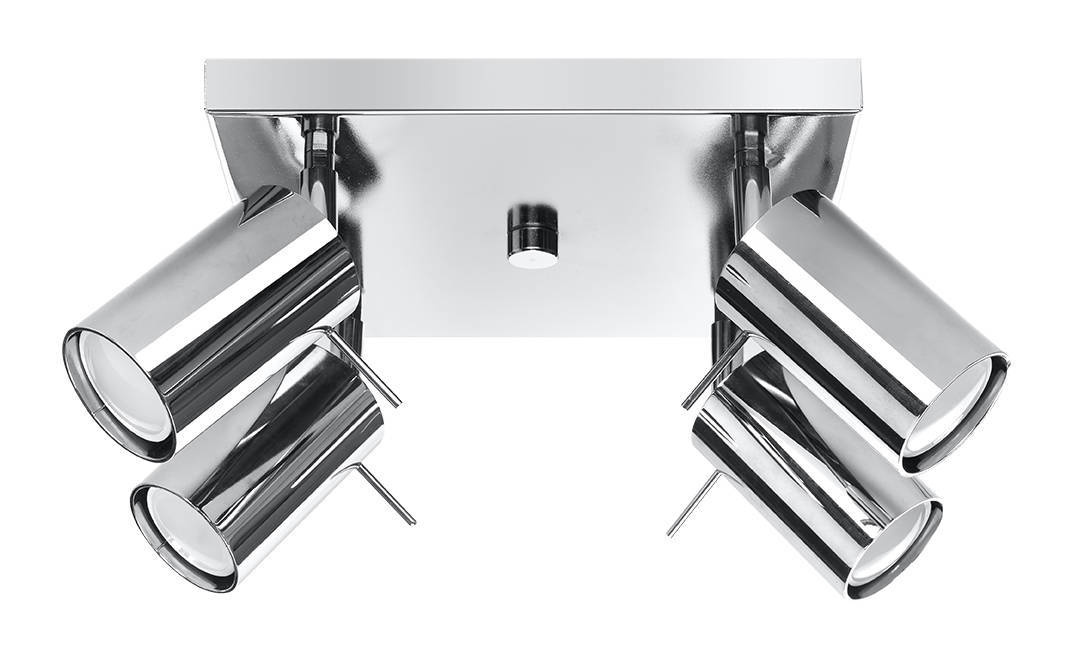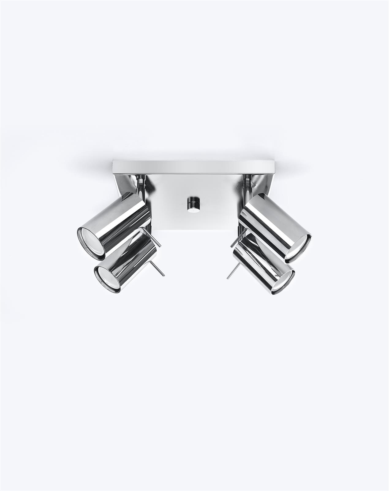 - Źródło światła: GU10, 4x40W, 4x12W LED, 50-60Hz, ~220-230V, IP20, klasa ochronności IŹródło światła nie jest w komplecie.Wymiary: 25/25/16 cmMateriał: stalKolor: chrom
