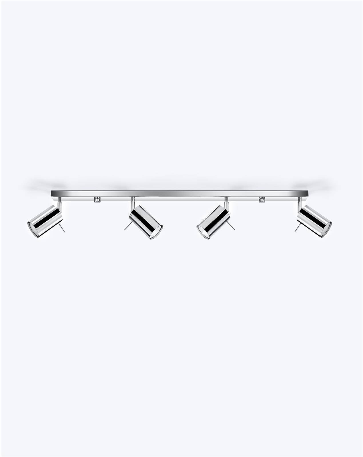 - Źródło światła: GU10, 4x40W, 4x12W LED, 50-60Hz, ~220-230V, IP20, klasa ochronności IŹródło światła nie jest w komplecie.Wymiary: 80/6/16 cmMateriał: stalKolor: chrom
