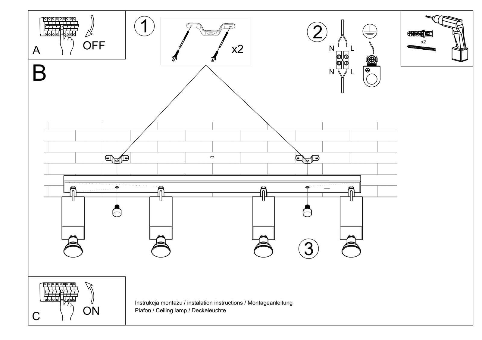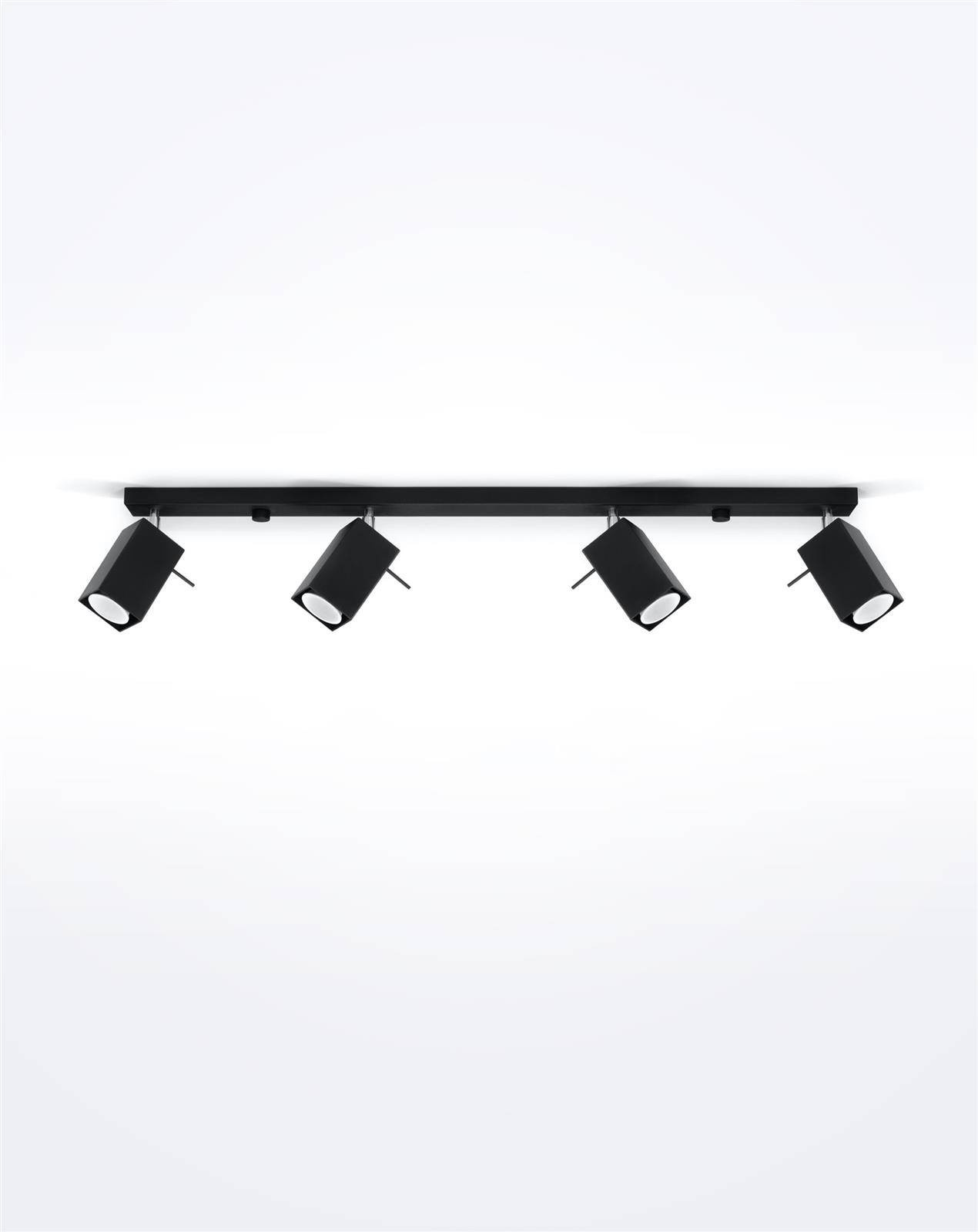 - Źródło światła: GU10, 4x40W, 4x12W LED, 50-60Hz, ~220-230V, IP20, klasa ochronności IŹródło światła nie jest w komplecie.Wymiary: 80/6/16 cmMateriał: stalKolor: czarny