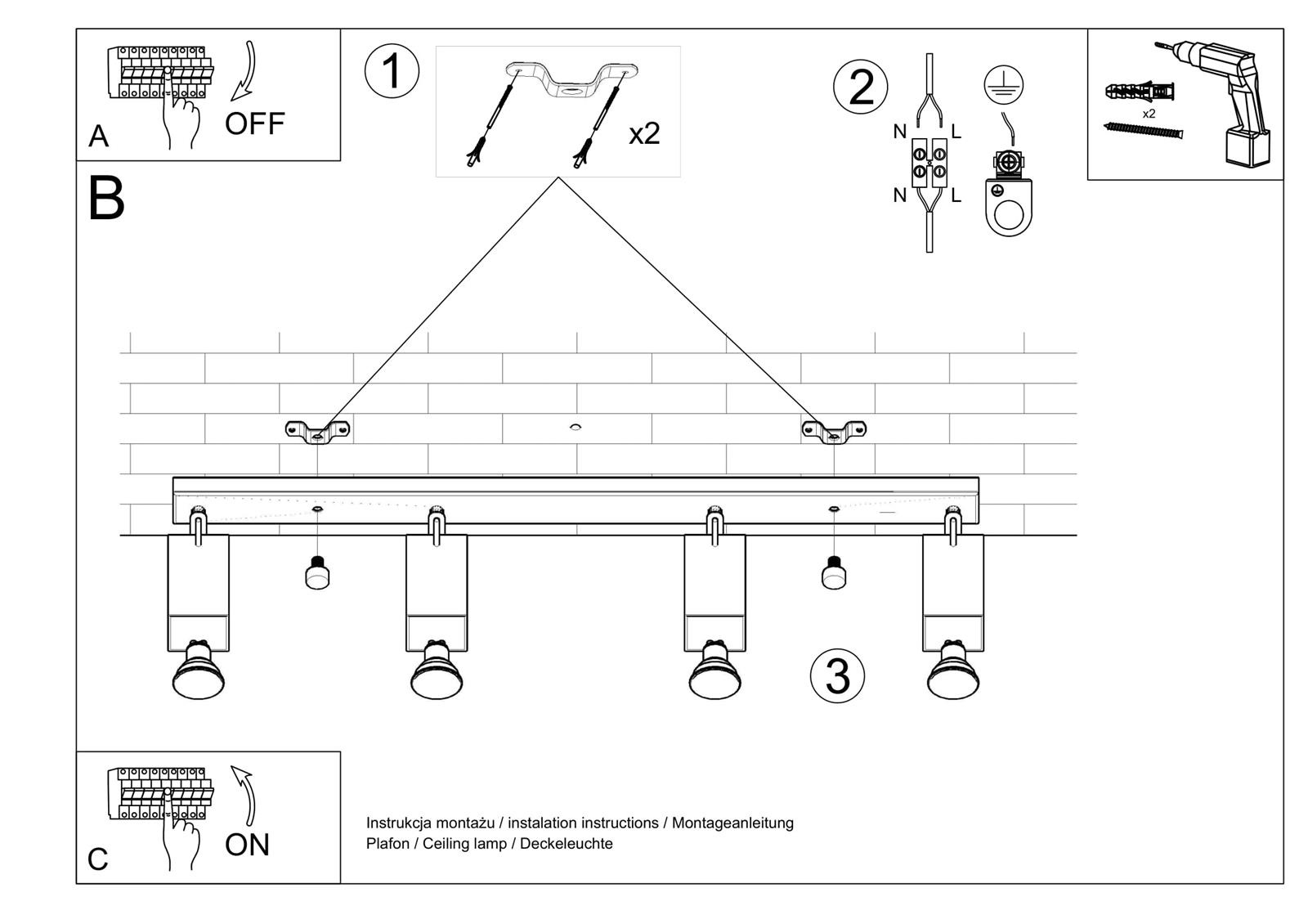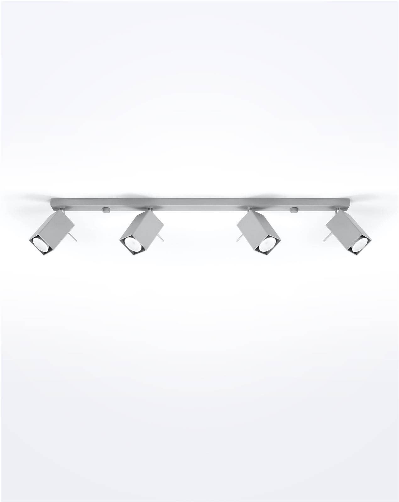- Źródło światła: GU10, 4x40W, 4x12W LED, 50-60Hz, ~220-230V, IP20, klasa ochronności IŹródło światła nie jest w komplecie.Wymiary: 80/6/16 cmMateriał: stalKolor: szary