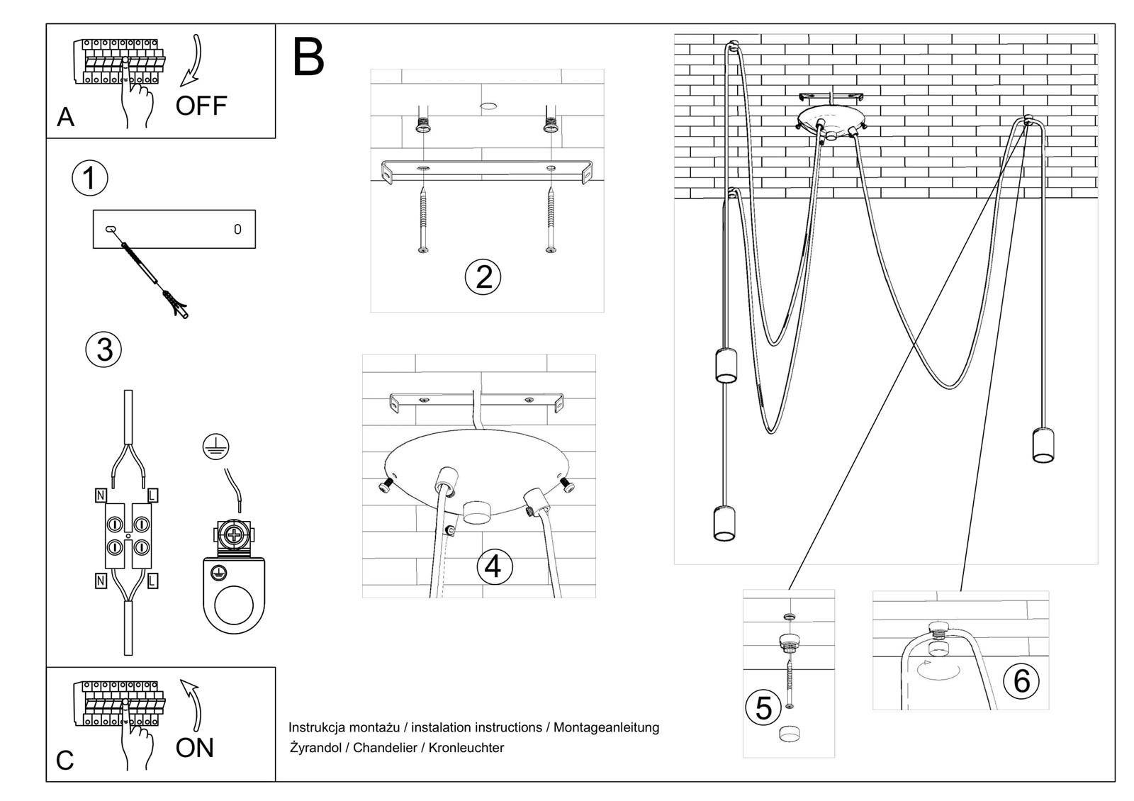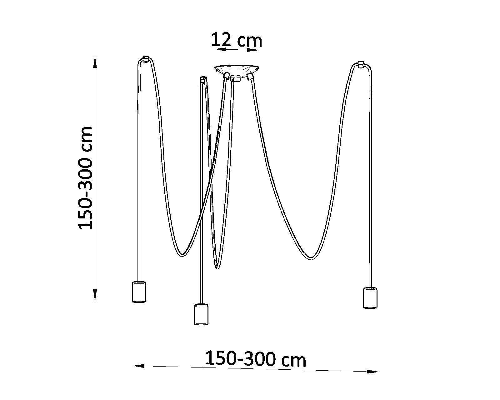 - Źródło światła: E27, 3x60W, 3x15W LED, 50-60Hz, ~220-230V, IP20, klasa ochronności IŹródło światła nie jest w komplecie.Wymiary: 300/300/150 cm [max. długość zawiesia 3 m]Materiał: tkanina, stalKolor: czarny