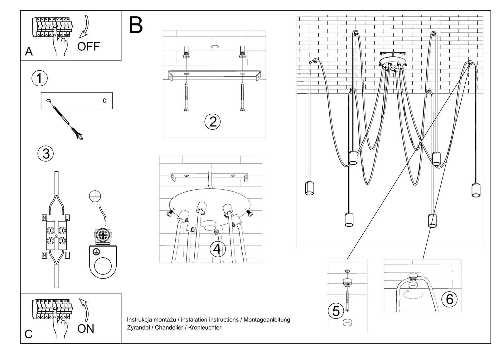 - Źródło światła: E27, 5x60W, 5x15W LED, 50-60Hz, ~220-230V, IP20, klasa ochronności IŹródło światła nie jest w komplecie.Wymiary: 300/300/150 cm [max. długość zawiesia 3 m]Materiał: tkanina, stalKolor: czarny
