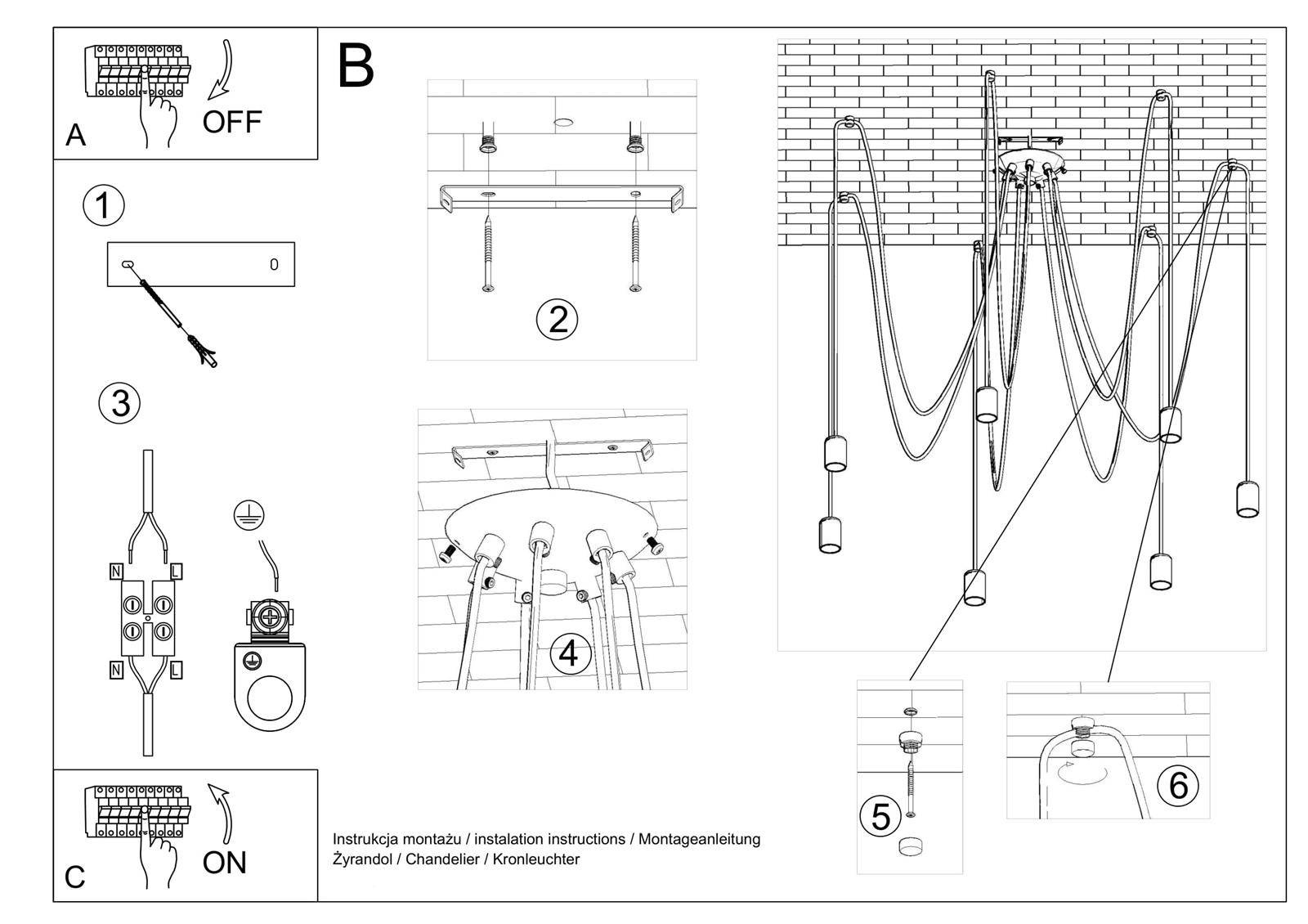 - Źródło światła: E27, 7x60W, 7x15W LED, 50-60Hz, ~220-230V, IP20, klasa ochronności IŹródło światła nie jest w komplecie.Wymiary: 300/300/150 cm [max. długość zawiesia 3 m]Materiał: tkanina, stalKolor: czarny