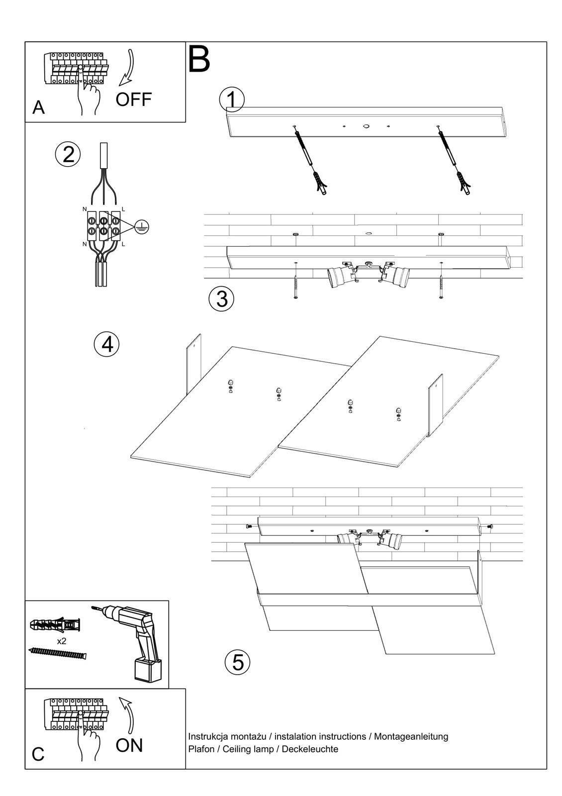 - Źródło światła: E27, 2x60W, 2x15W LED, 50-60Hz, ~220-230V, IP20, klasa ochronności IŹródło światła nie jest w komplecie.Wymiary: 65/50/11 cmMateriał: stal, szkło Kolor: chrom, biały