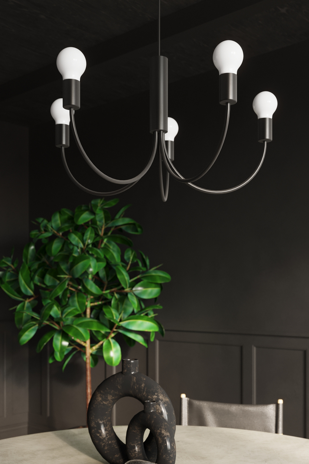 - Źródło światła: E27, 3x60W, 3x15W LED, 50-60Hz, ~220-230V, IP20, klasa ochronności I Źródło światła nie jest w komplecie. Wymiary: 45/45/100 cmMateriał: stal Kolor: czarny