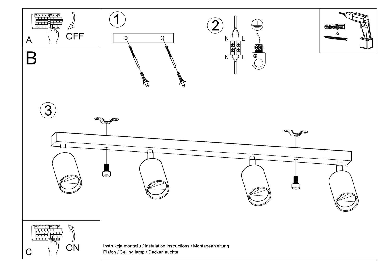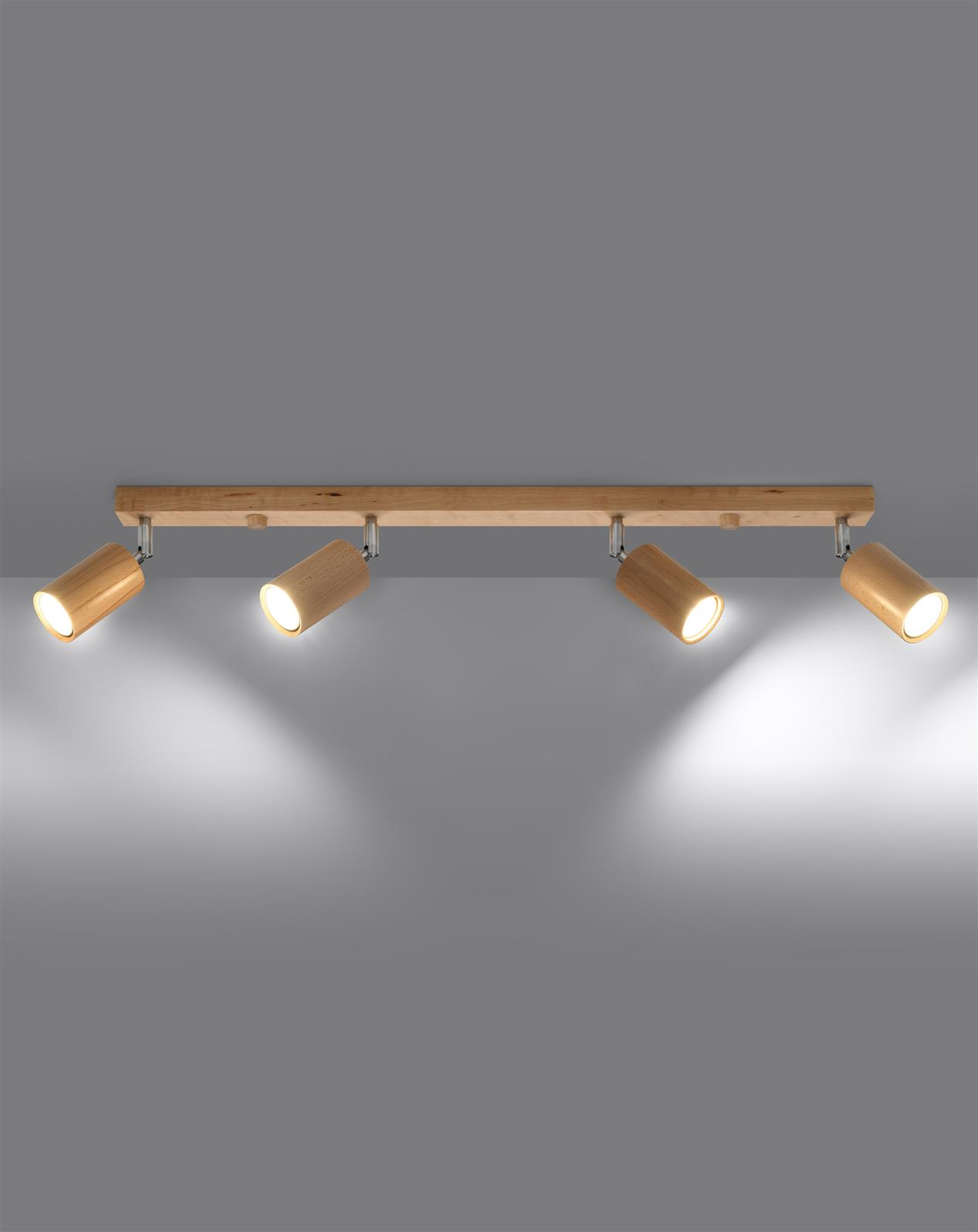 - Źródło światła: GU10, 4x40W, 4x12W LED, 50-60Hz, ~220-230V, IP20, klasa ochronności IŹródło światła nie jest w komplecie.Wymiary: 80/5/20 cmMateriał: drewno Kolor: naturalne drewno