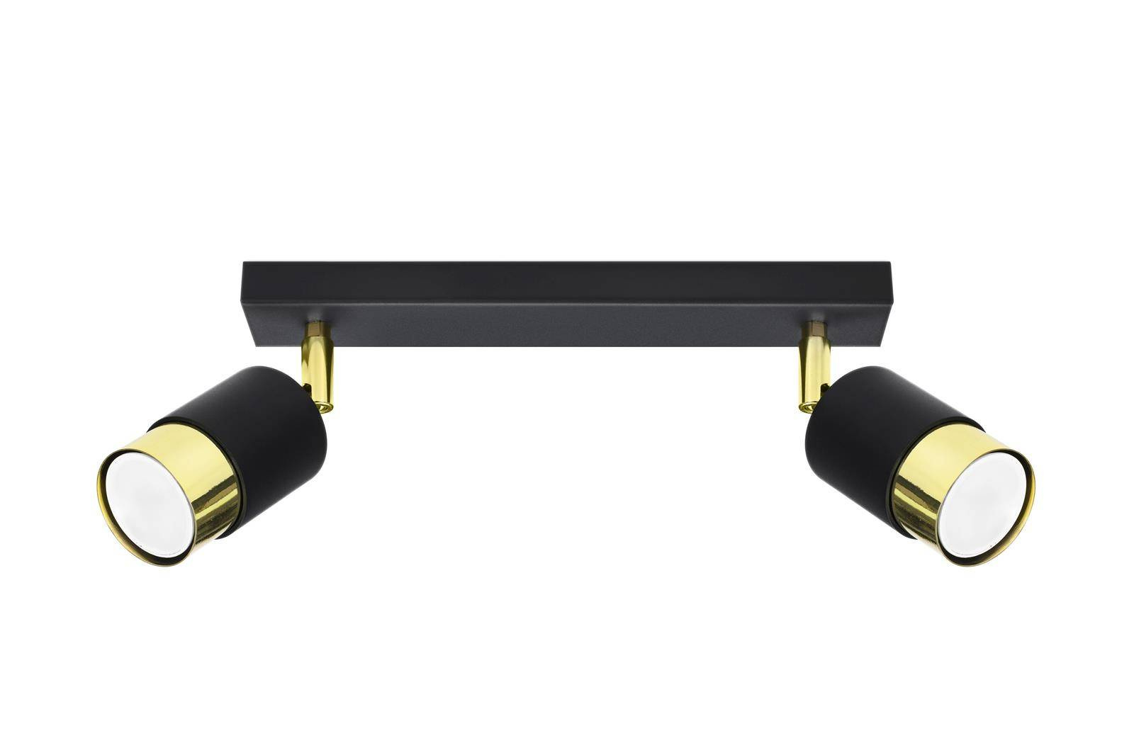 - Źródło światła: GU10, 2x40W, 2x12W LED, 50-60Hz, ~220-230V, IP20, klasa ochronności IŹródło światła nie jest w komplecie.Wymiary: 30/5/18 cmMateriał: stalKolor: czarny/złoty