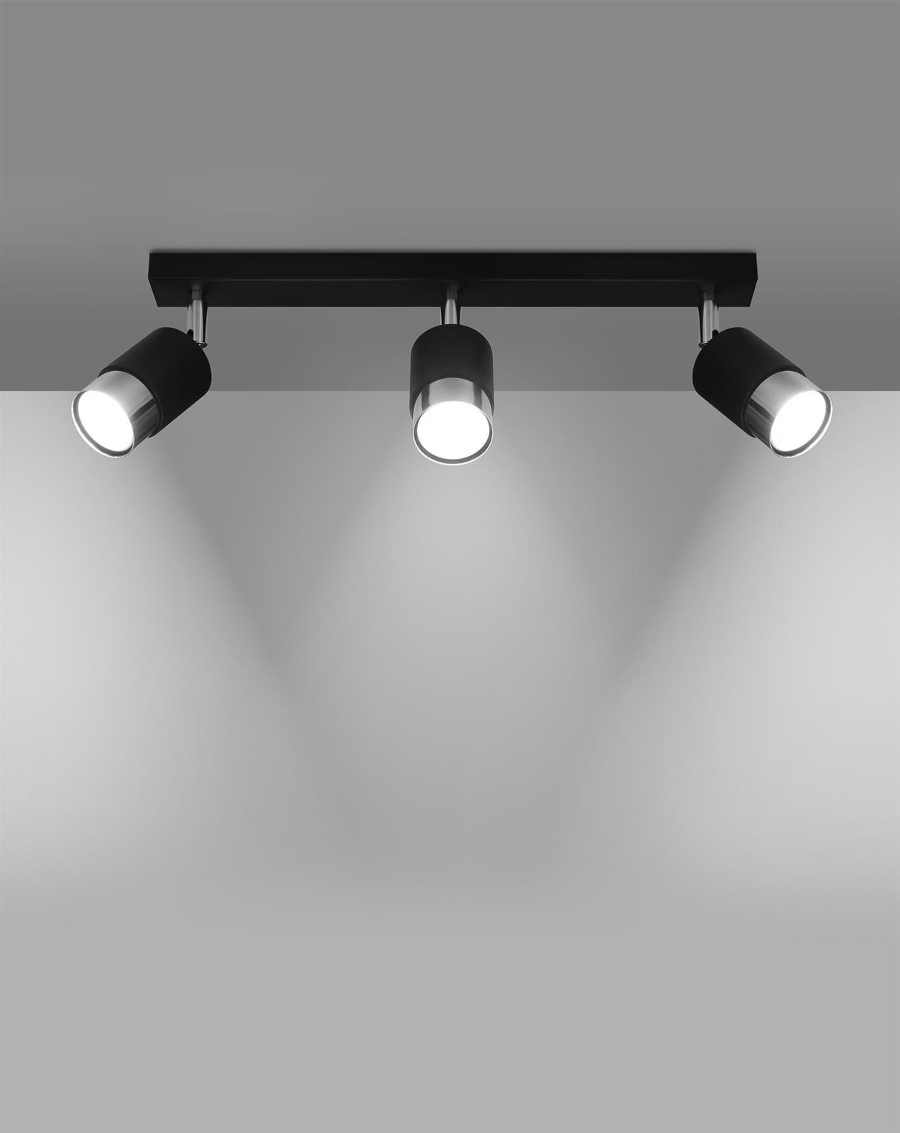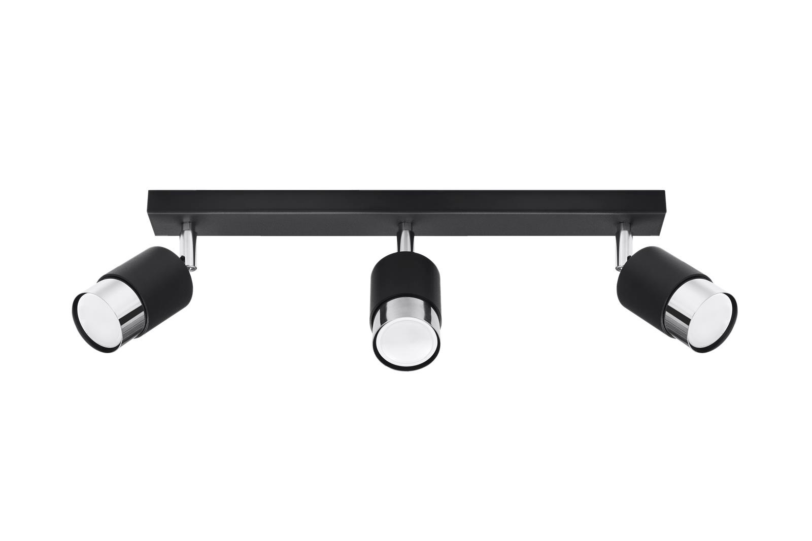 - Źródło światła: GU10, 3x40W, 3x12W LED, 50-60Hz, ~220-230V, IP20, klasa ochronności IŹródło światła nie jest w komplecie.Wymiary: 45/5/18 cmMateriał: stalKolor: czarny/chrom