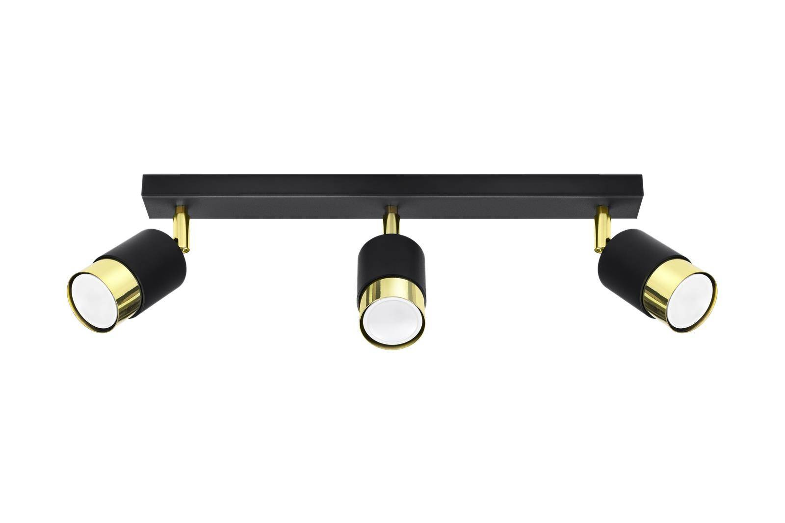 - Źródło światła: GU10, 3x40W, 3x12W LED, 50-60Hz, ~220-230V, IP20, klasa ochronności IŹródło światła nie jest w komplecie.Wymiary: 45/5/18 cmMateriał: stalKolor: czarny/złoty
