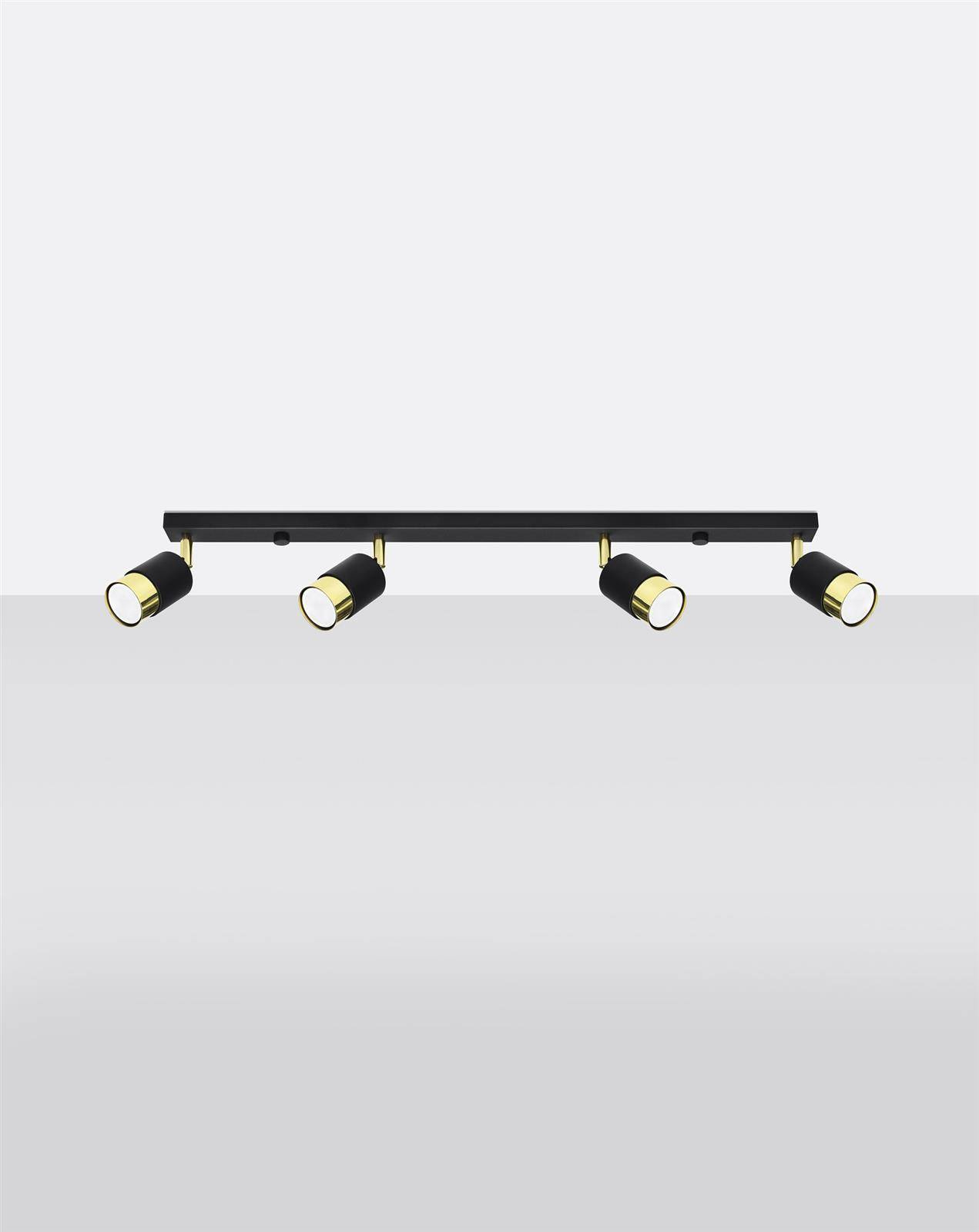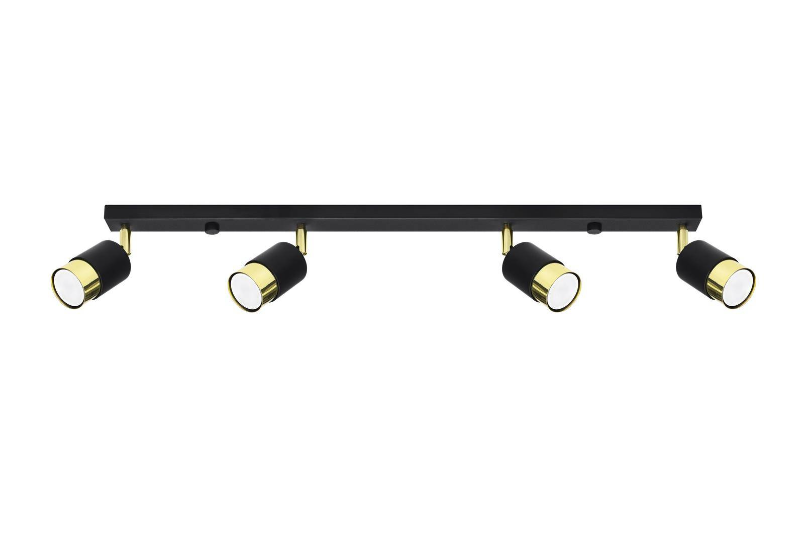 - Źródło światła: GU10, 4x40W, 4x12W LED, 50-60Hz, ~220-230V, IP20, klasa ochronności IŹródło światła nie jest w komplecie.Wymiary: 81/5/18 cmMateriał: stalKolor: czarny/złoty
