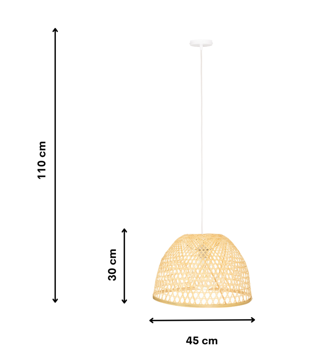 ,Model należy do kolekcji ręcznie wyplatanych lamp bambusowych. Znakomicie wpisuje się we wnętrza inspirowane naturą. Komponuje się ze stylem skandynawskim, znakomicie dopełni tez aranżację BOHO. Splot bambusowego drewna pozwala na przenikanie światła dzięki lampa stanowi znakomitą formę oświetlenia wnętrza. Lampa sprawdzi się w kuchni nad stołem ale także jako główne oświetlenie w salonie.