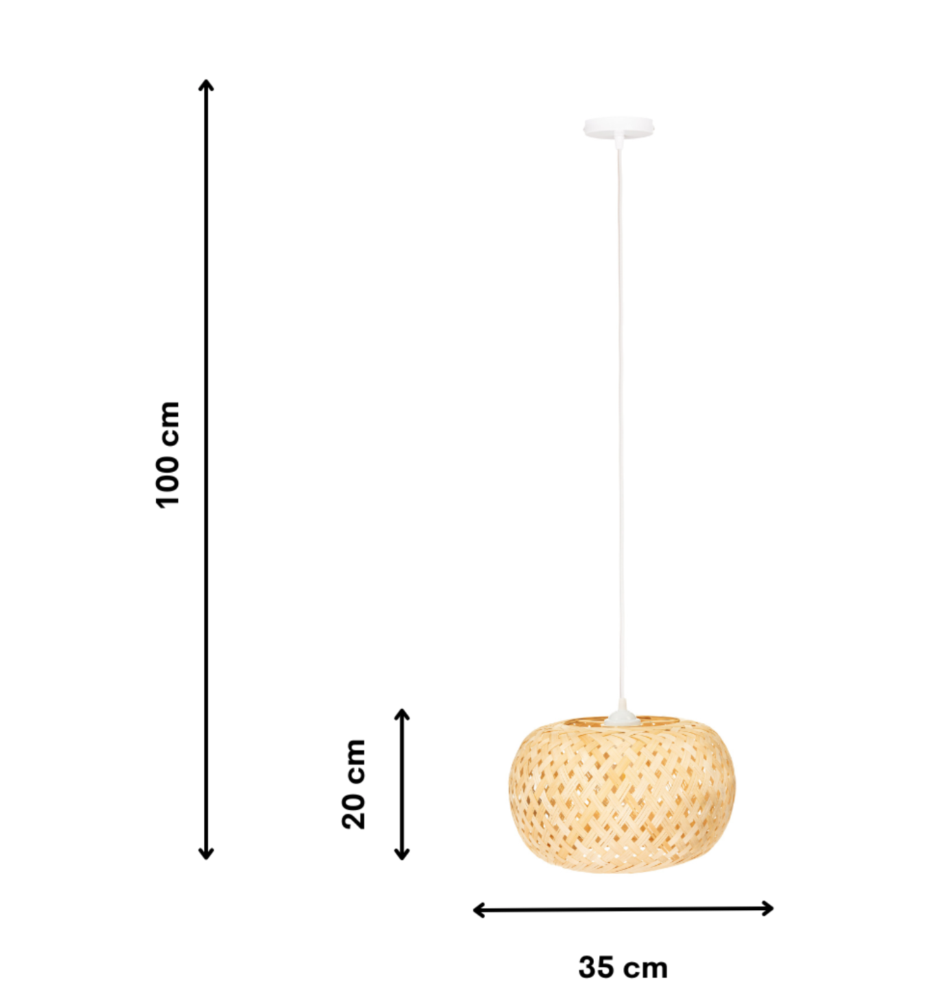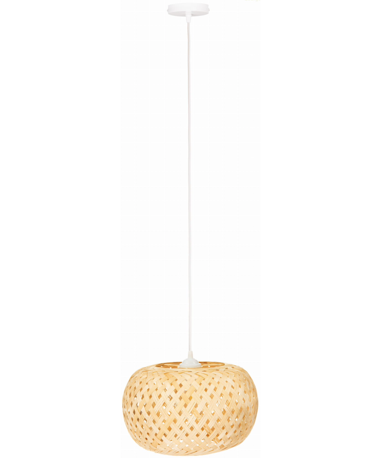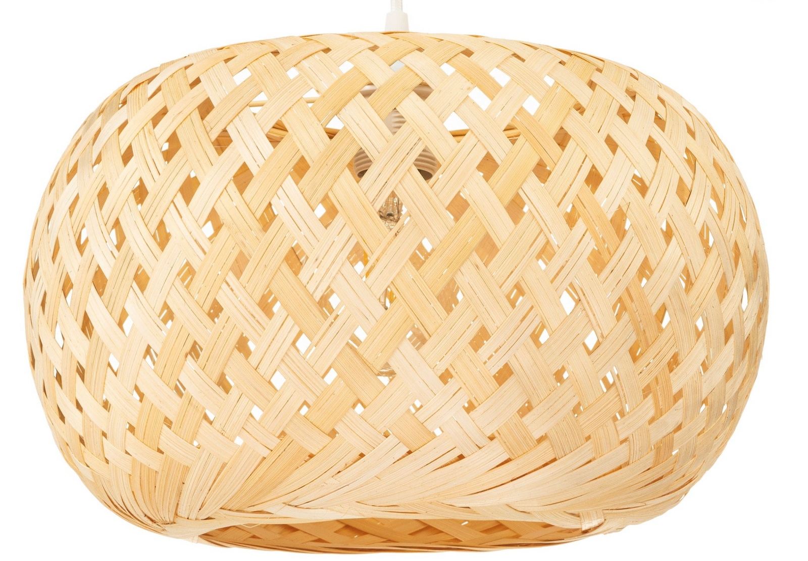 ,Model należy do kolekcji ręcznie wyplatanych lamp bambusowych. Znakomicie wpisuje się we wnętrza inspirowane naturą. Komponuje się ze stylem skandynawskim, znakomicie dopełni tez aranżację BOHO. Splot bambusowego drewna pozwala na przenikanie światła dzięki lampa stanowi znakomitą formę oświetlenia wnętrza. Lampa sprawdzi się w kuchni nad stołem ale także jako główne oświetlenie w salonie.