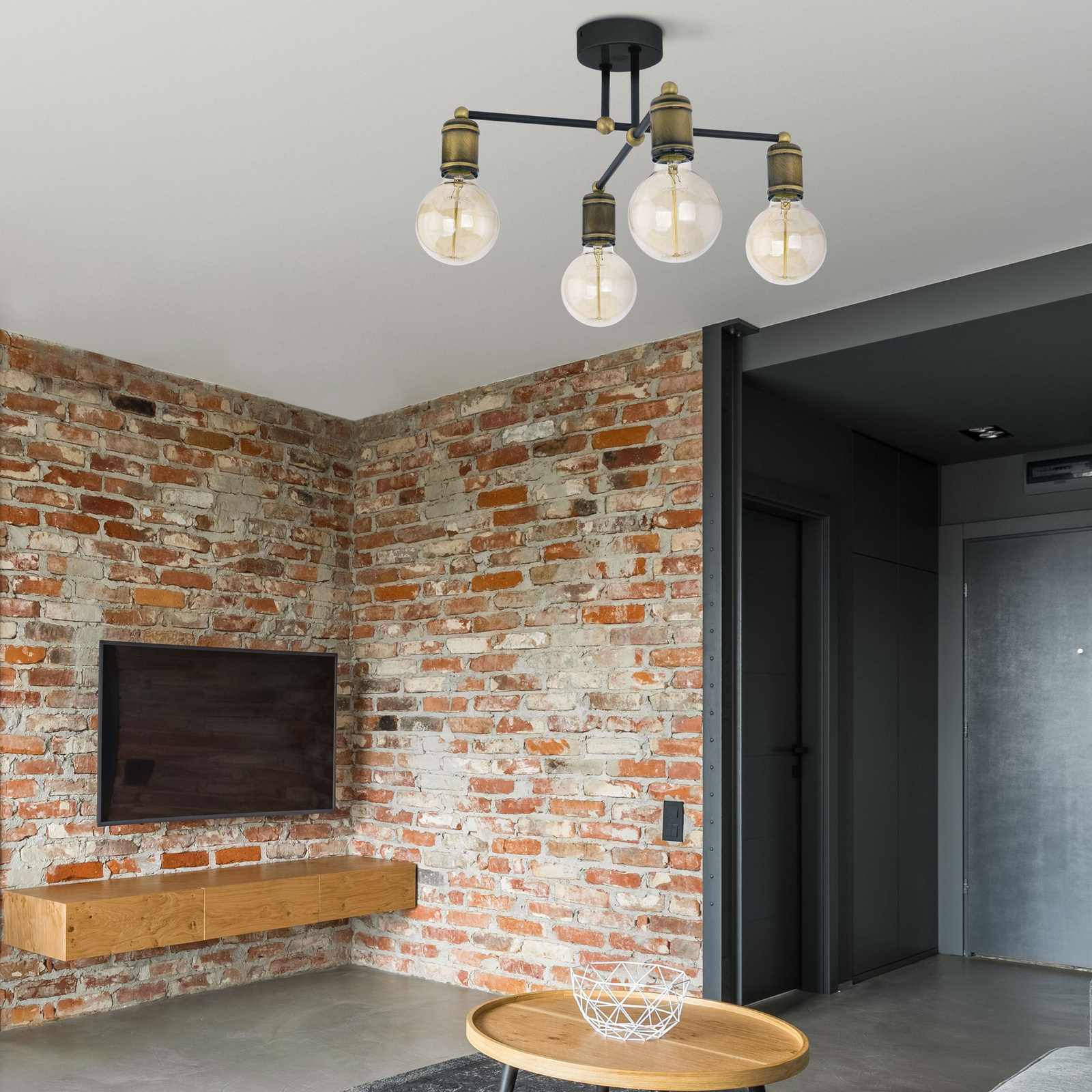 Lampa sufitowa RETRO CZARNA/PATYNA 4xE27