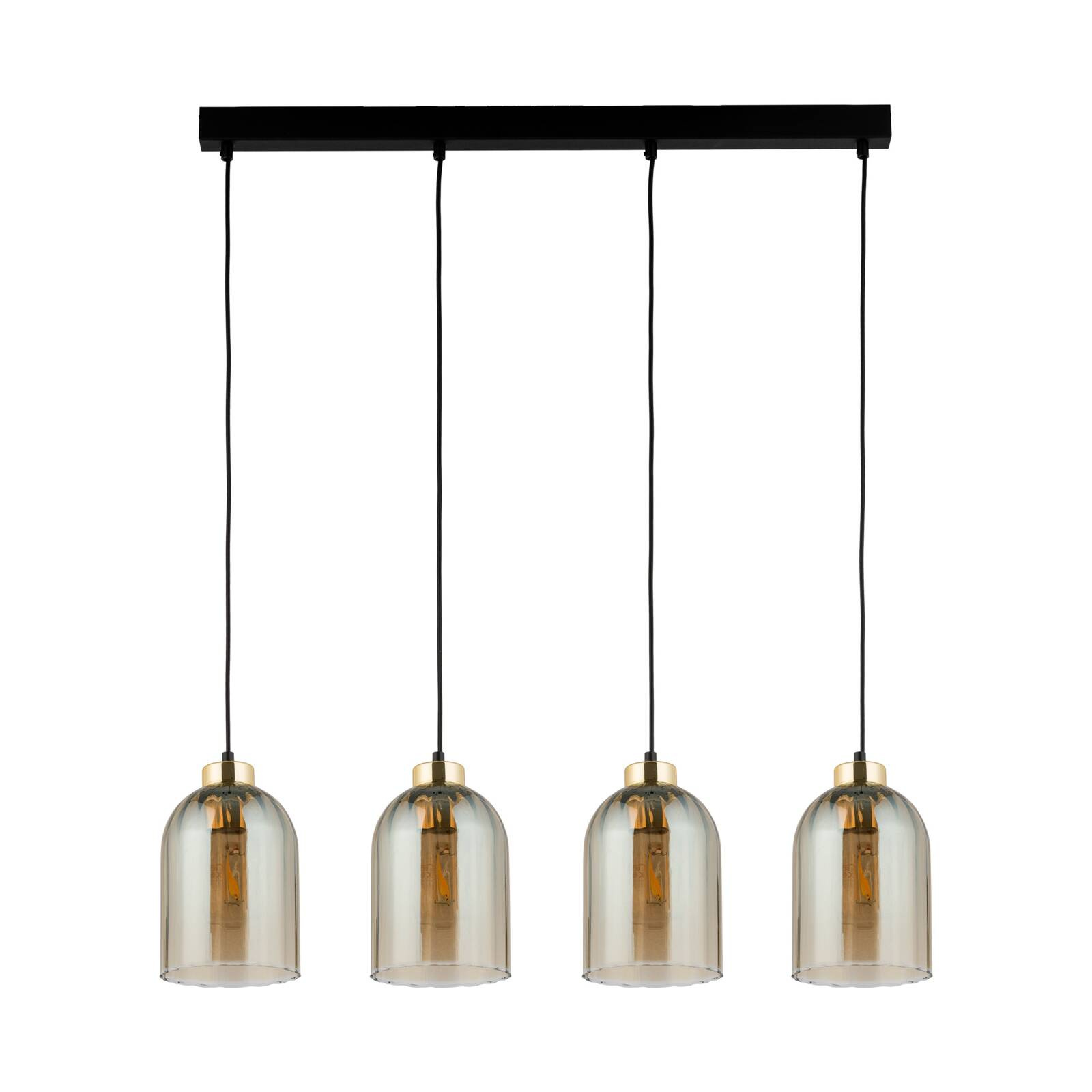 ,Wiszące lampy z kolekcji SATIPO są z pozoru bardzo proste. Szklany klosz w kształcie walca w połączeniu z czarną oprawą tworzą harmonijną kompozycję. Ich charakter podkreślają złote elementy. Dzięki temu mamy interesującą i przykuwającą wzrok oprawę, której celem jest nie tylko przyjemne oświetlenie pomieszczenia, ale również ozdobienie go. W kolekcji lamp SATIPO mamy do wyboru modele z jednym, trzema bądź pięcioma źródłami światła. Wszystkie zostały wykonane z najwyższą starannością. Lampy SATIPO będą pasować zarówno do klasycznych, jak i nowoczesnych wnętrz.