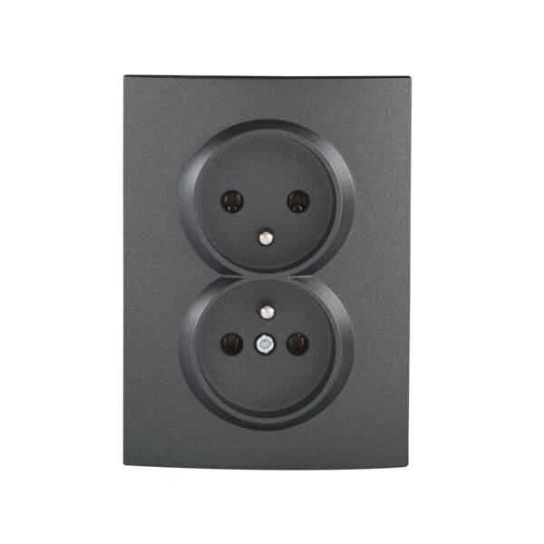 Gniazdo podtynkowe zasilające podwójne francuskie kompletne LOGI grafitowe
