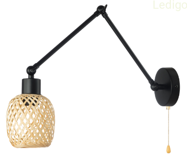 Kinkiet regulowany czarny klosz długi bambus z łańcuszkiem 1xE27