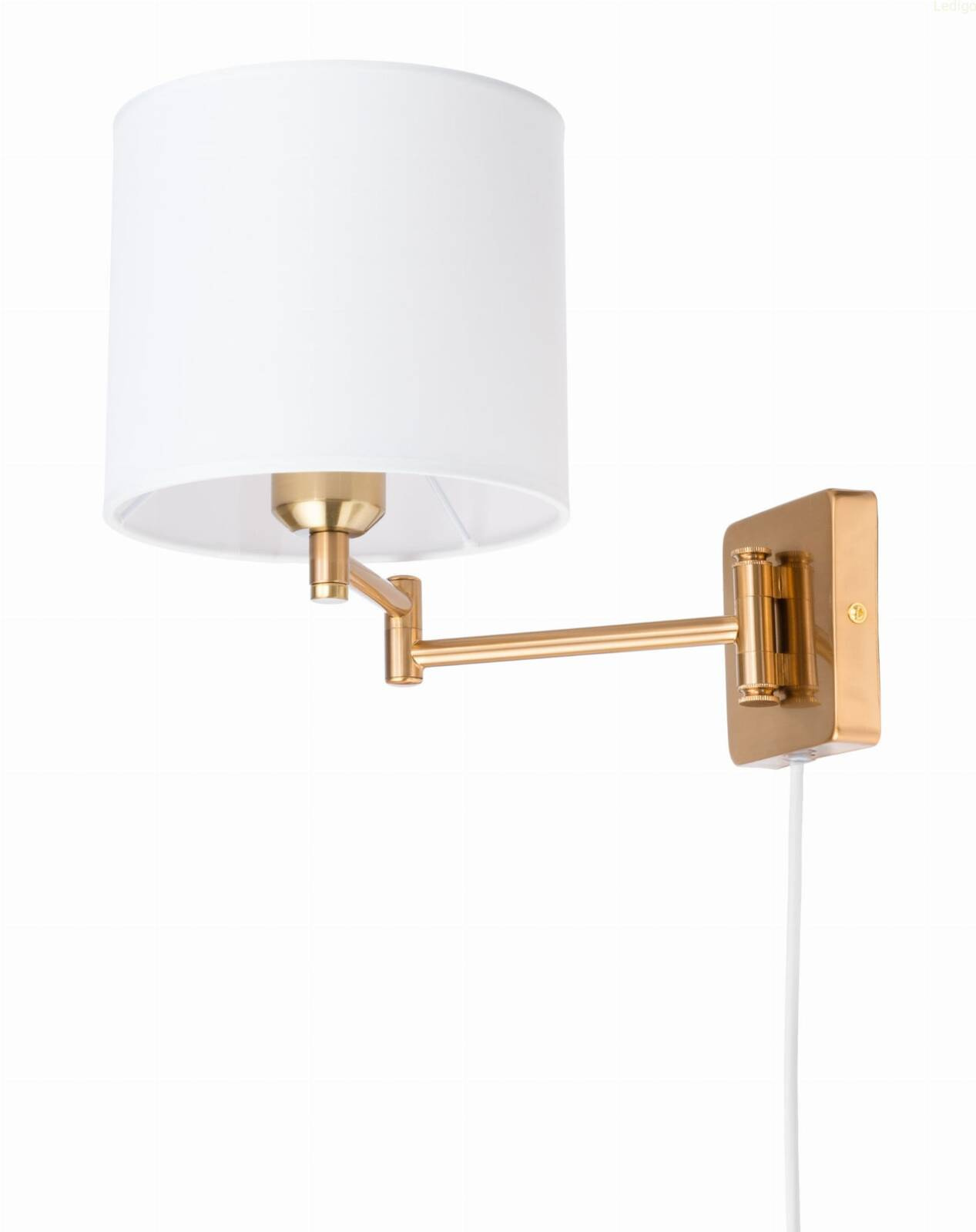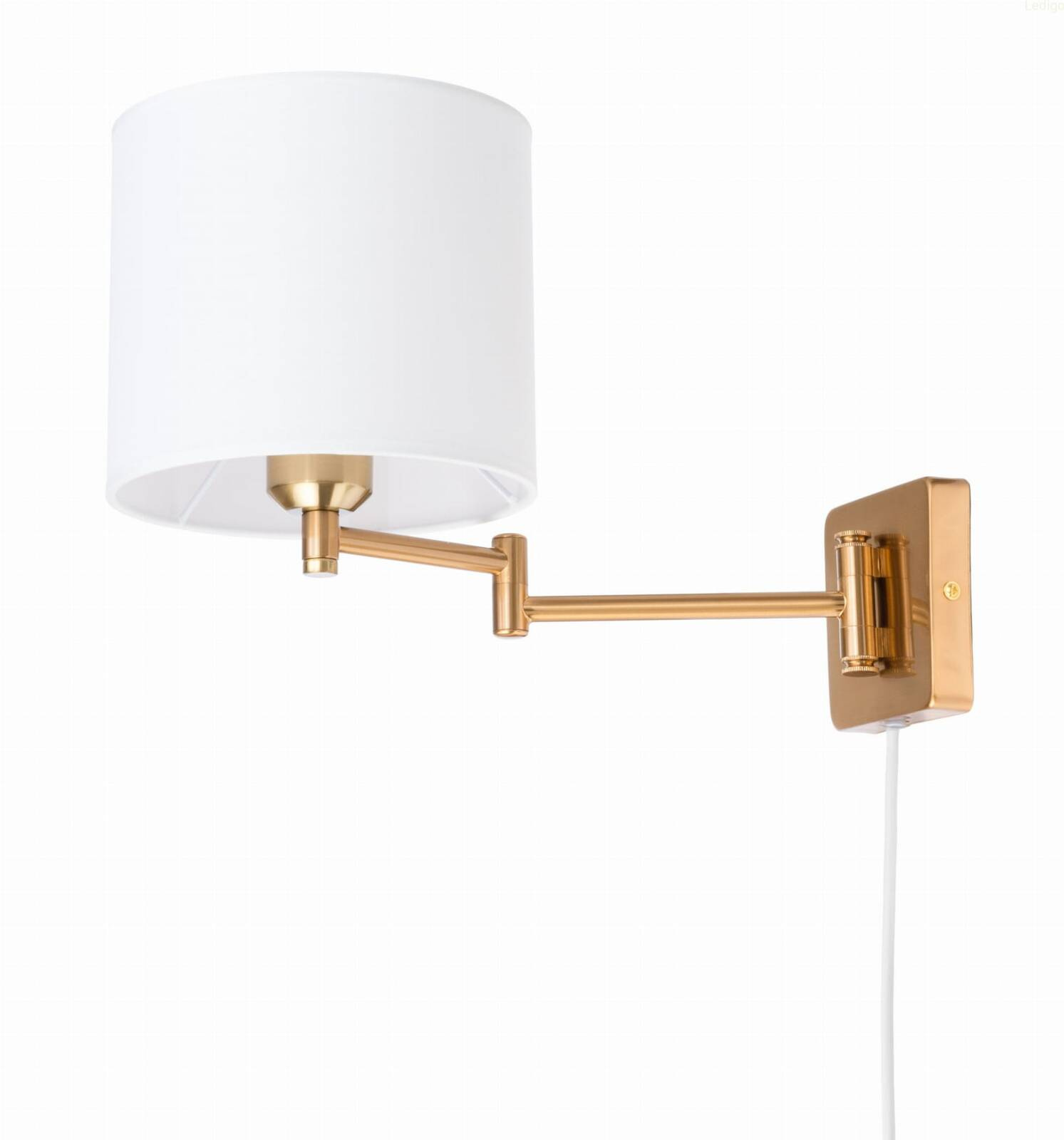 Kinkiet hotelowy złoty z kablem i białym abażurem 1xE27