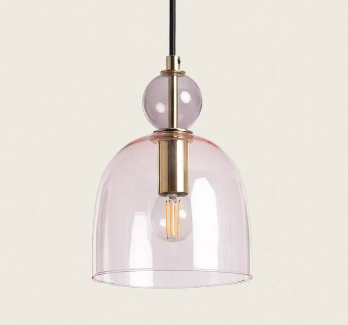 Lampa Wisząca z Metalu i Szkła Mono-Baudelaire łączy wyjątkowy i elegancki design z najwyższej jakości wykończeniami. Ta lampa wnosi odrobinę koloru i osobowości do wybranej przestrzeni. Lampa Wisząca z Metalu i Szkła Mono-Baudelaire doskonale sprawdzi się w przestrzeniach utrzymanych w stylu vintage. Jej klosz składa się z kolorowej szklanej kuli, za którą znajduje się klosz w kształcie kopuły, wykonany ze szkła i wykończony w innym kolorze niż górna kula. Jego projekt kończy się dopasowaną oprawką lampy i rozetą w kolorze złotym i chromowanym wykończeniu. To, jakie światło emituje ta lampa, będzie uzależnione od wybranej przez nas żarówki E14. W ten sposób możemy wybrać światło ciepłe, zimne lub neutralne w zależności od otoczenia, jakie chcemy stworzyć. Ciekawą opcją jest wybór niektórych żarówek RGB lub CCT, które dadzą nam plus uniwersalności w oświetlaniu przestrzeni, czy to w domu, czy w lokalu użytkowym. Jest szeroko stosowana w tak różnych miejscach, jak jadalnie, sypialnie, kuchnie, biura, salony, restauracje, kawiarnie itp.