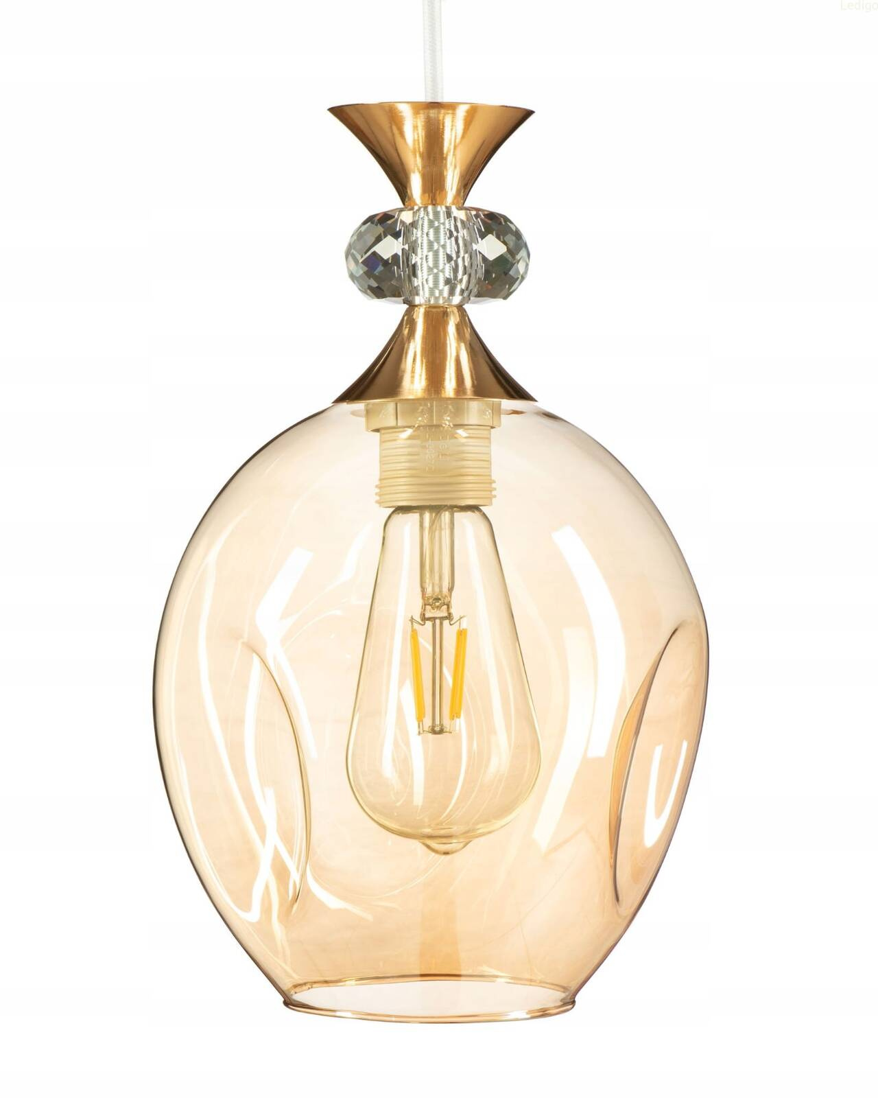 Zgrabna lampa w stylu glamour. Szklany klosz jest w delikatnym bursztynowym wybarwieniu. Lampa posiada estetyczne wykończenie w postaci gładkiego szlifu i atrakcyjnej oprawie. Kryształ nadaje lampie unikatowej formy. Lampa świetnie wpisuje się w nowoczesne wnętrza. Nada elegancki akcent w sypialni czy w salonie. Do lampy polecamy żarówki LED LEDIGO w ozdobnej formie z diodami filament Bardzo pięknie prezentuje się kilka lamp tego modelu zawieszonych obok siebie. Lampa jest łatwa w montażu. Jest łatwa w utrzymaniu. Wszystkie nasze lampy mają możliwość regulacji kabla. Montując lampę to klient decyduje na jakiej długości kabla będzie ona wisiała my podajemy maxymalny wymiar. Lampa wysłana jest w kartonowym opakowaniu ze styropianową formą zabezpieczającą. Komplet komponentów przygotowany jest do montażu lampy w całość.