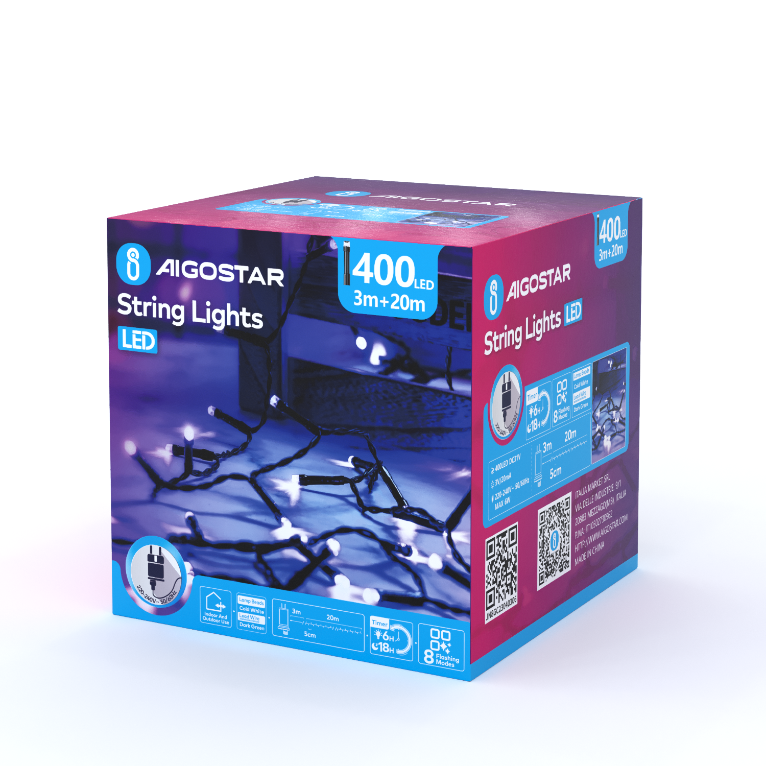 ,Energooszczędne lampki choinkowe 400 LED przeznaczone do stosowania jako oświetlenie dekoracyjne choinek, okien w pomieszczeniach zamkniętych. Zestaw posiada osiem programów świecenia.
