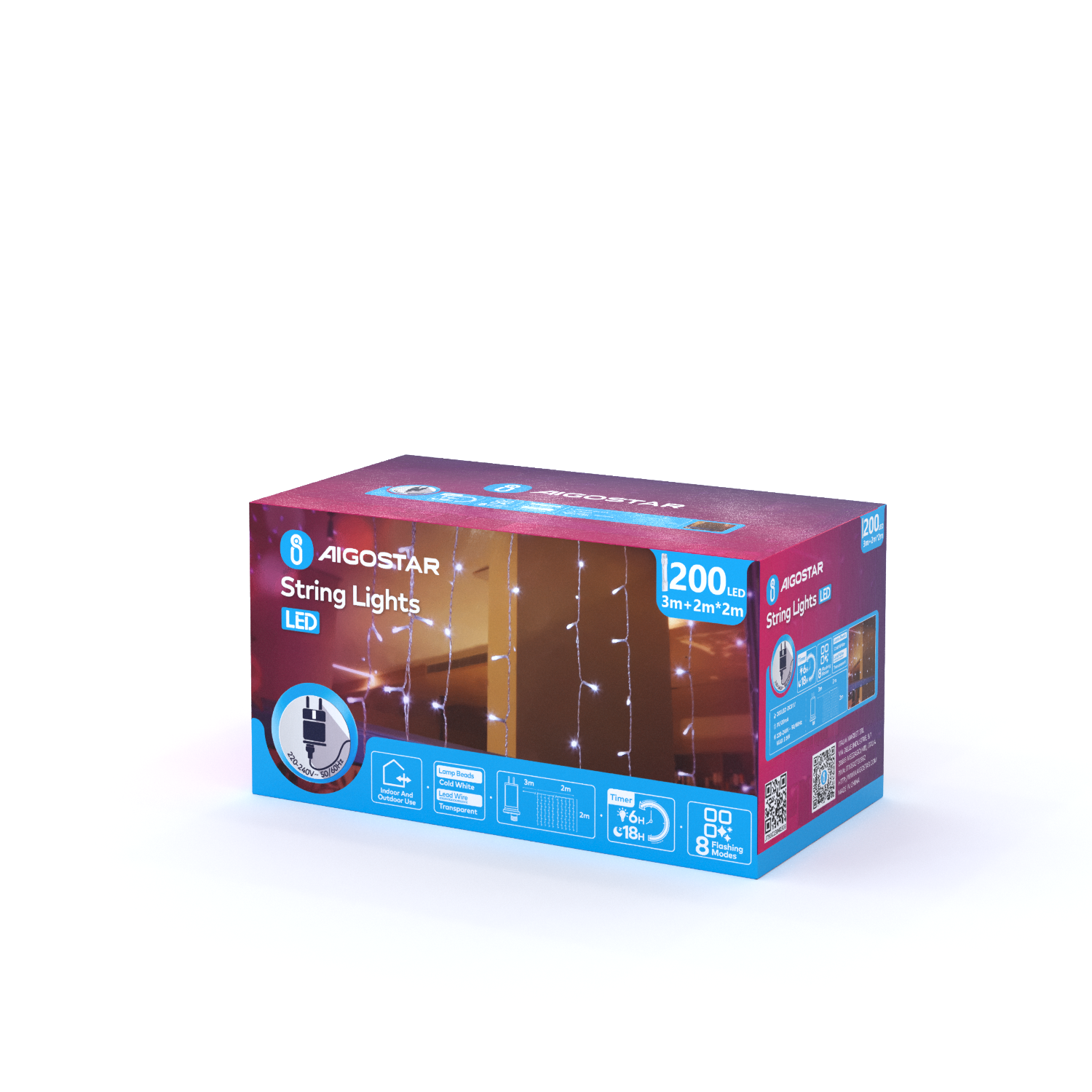 ,Kurtynka świetlna 200 LED typu idealna do zastosowania zarówno na zewnątrz jak i wewnątrz z 200 diodami LED o długości 2mx2m. Kurtyny LED znajdują zastosowanie szczególnie do ozdabiania elewacji, okien, balkonów, tarasów, dachów oraz aranżacji wewnętrznej i zewnętrznej. Kurtynki LED na całej swej długości posiadają ułożone pionowo sznury z diodami LED. Poprzez zastosowanie wysokiej jakości diod LED kurtyny świetlne LED cechują się znikomym poborem mocy oraz długą żywotnością 15000h.