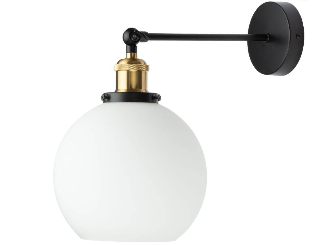 ,Prezentujemy kinkiet wykonany jest z metalu w kolorze matowej czerni. Oprawa w złotym kolorze sprawia że kinkiet znakomicie prezentuje się również w nowoczesnych wnętrzach. Dodatkowym atutem kinkietu jest możliwość ustawienia klosza pod różnym kątem. Regulacja motylkowa (góra dół) Kinkiet świetnie prezentuje się na tle betonu i surowej cegły może być również odważnym akcentem w rustykalnych wnętrzach. Jest znakomitym dopełnieniem wnętrz o industrialnym i loftowym charakterze. Wpisuje się również w nowoczesne aranżacje. Jeśli poszukujesz kinkietu, który nie tylko doświetli wnętrze ale także spełni funkcję dekoracyjną to nasza lampa będzie dobrym wyborem.