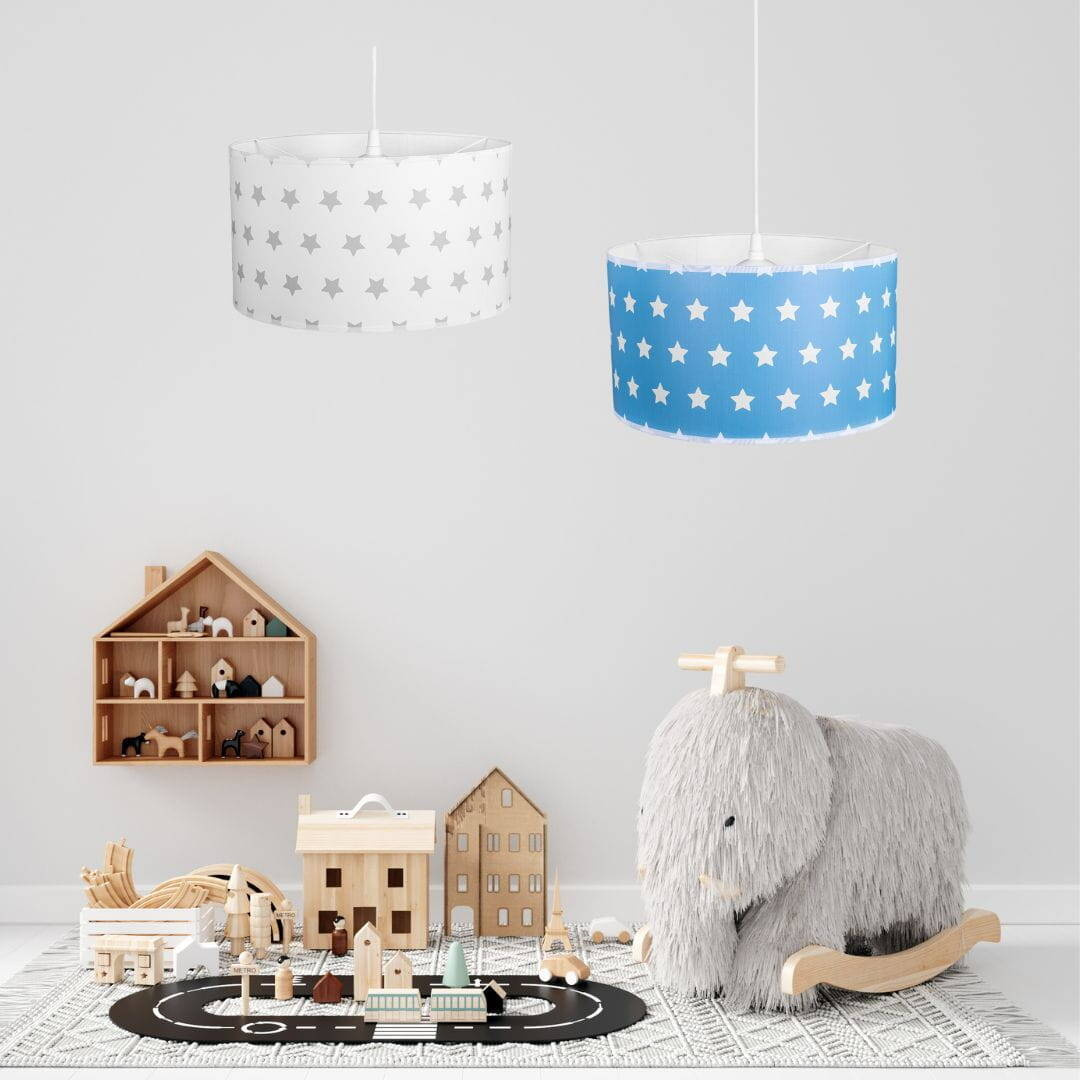 Lampa wisząca z abażurem dziecięca niebieska gwiazdki