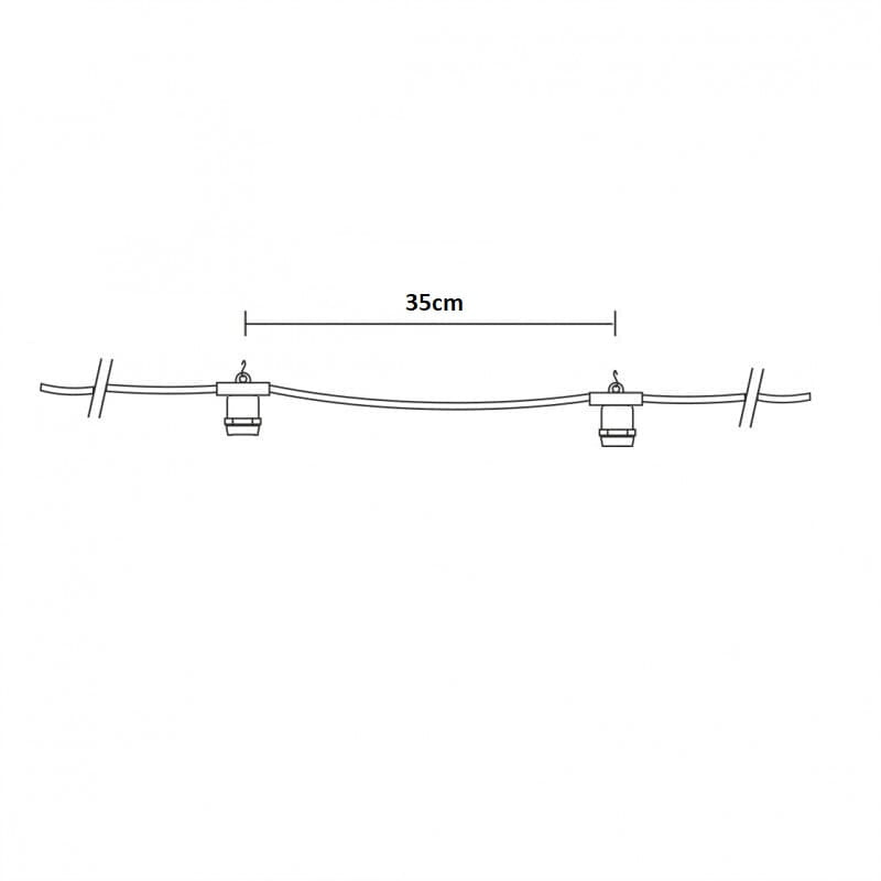 - Zaczepy na wysokości każdej z 10 opraw co znacznie ułatwia zamontowanie girlandy praktycznie w każdym miejscu