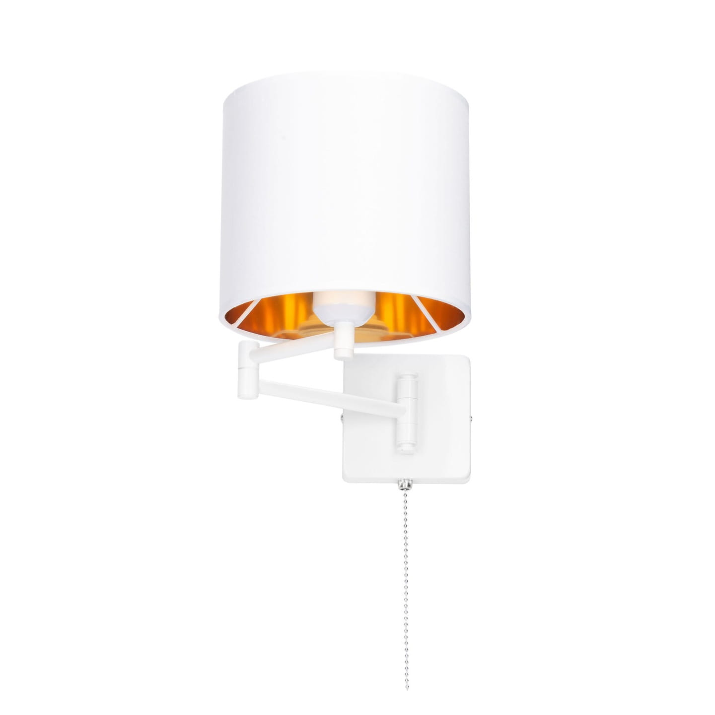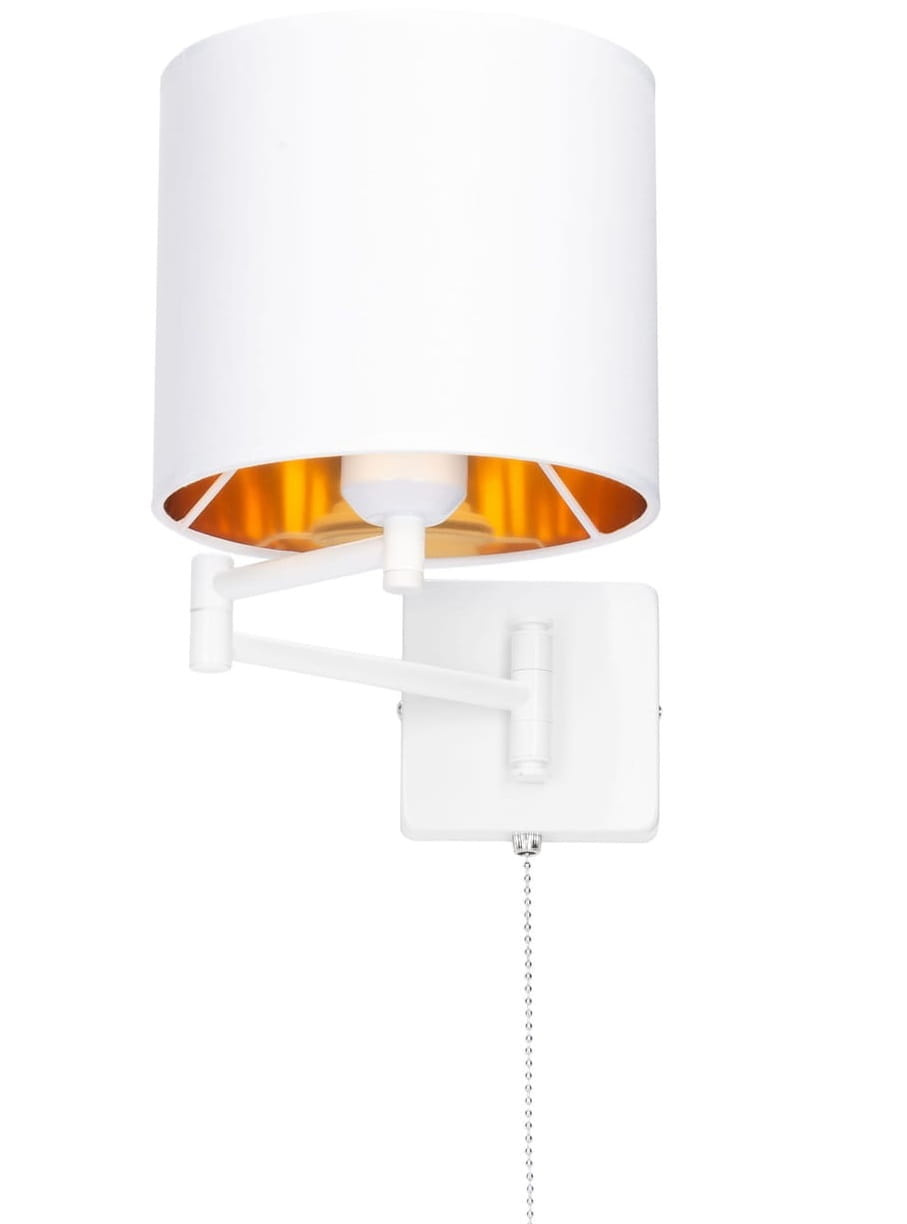 Kinkiet regulowany z abażurem biały hotelowy z łańcuszkiem