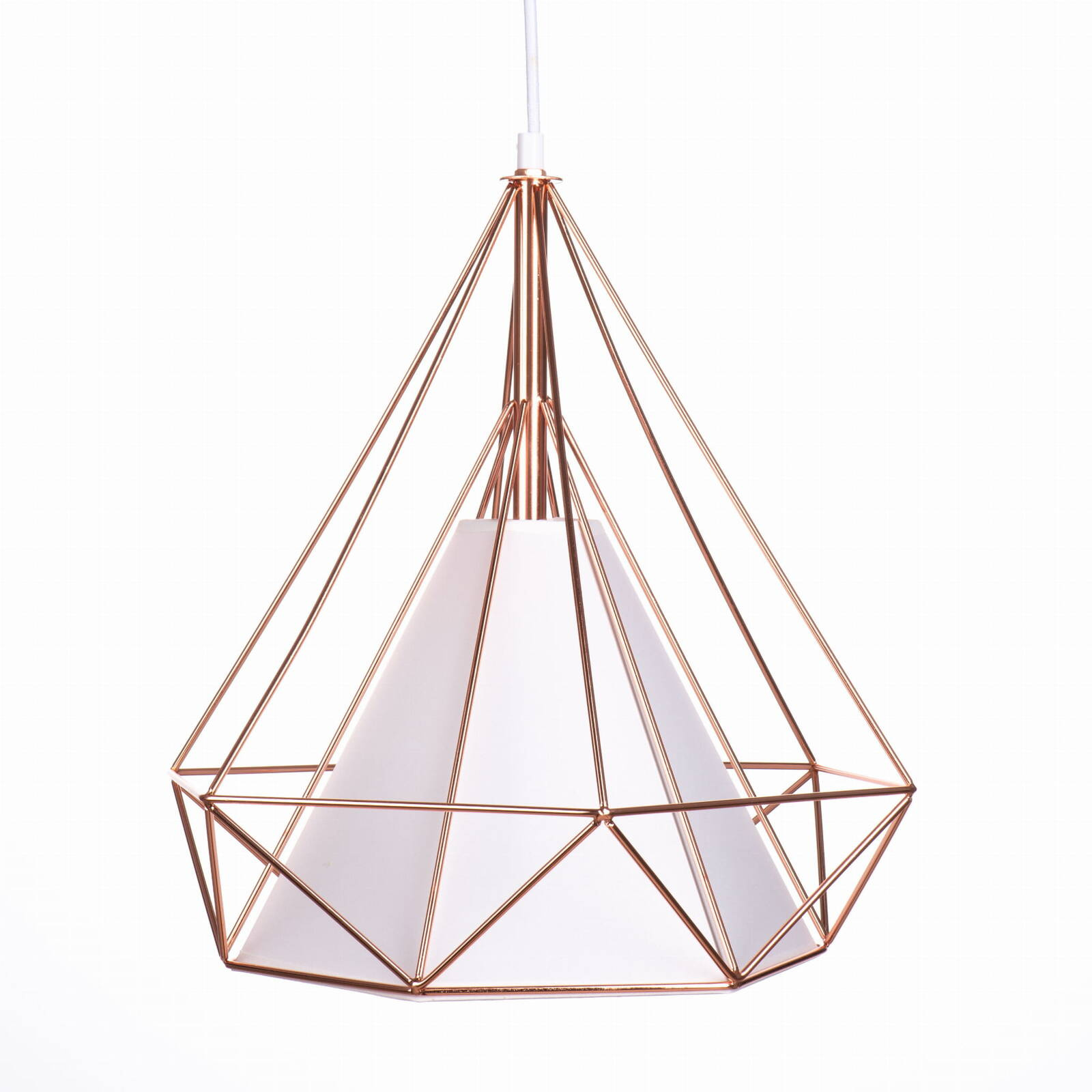 NOWOCZESNY DESIGN - Zupełnie nietuzinkowy design lampy która wykorzystuje ażurową formę klosza ze zintegrowanym abażurem wewnątrz. Połączenie kolorów różowego złota z bielą sprawia że lampa świetnie wpisuje się w obecne trendy wnętrzarskie