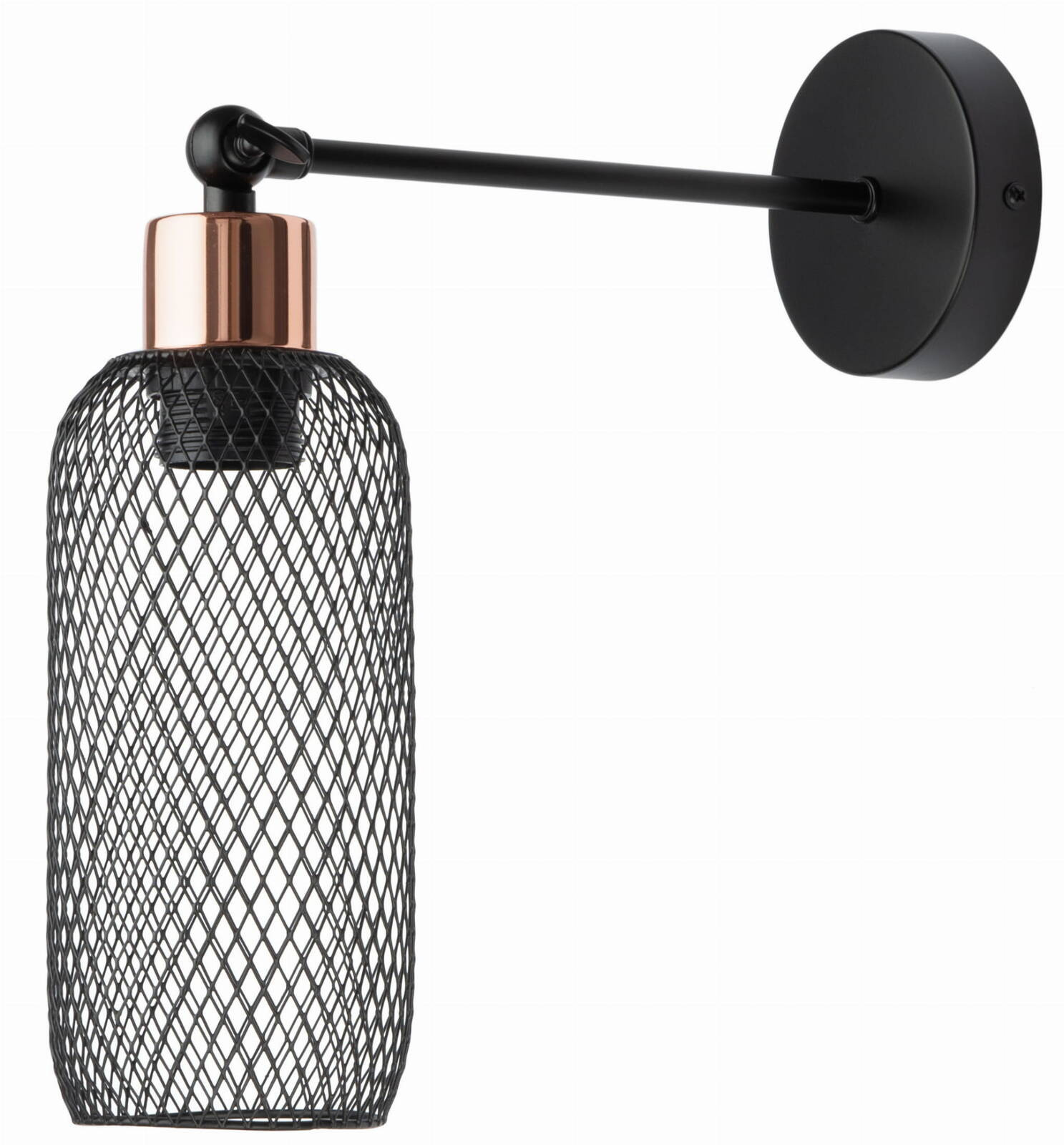 Kinkiet ścienny o prostej formie świetnie wpisuje się w loftowe jak i industrialne wnętrza. Kinkiet posiada metalowy klosz o strukturze przeplatanej siatki, oraz oprawę w kolorze różowego złota. Gruby gwint kinkietu pozwala na łatwy wybór źródła światła. Polecamy nasze żarówki LED.