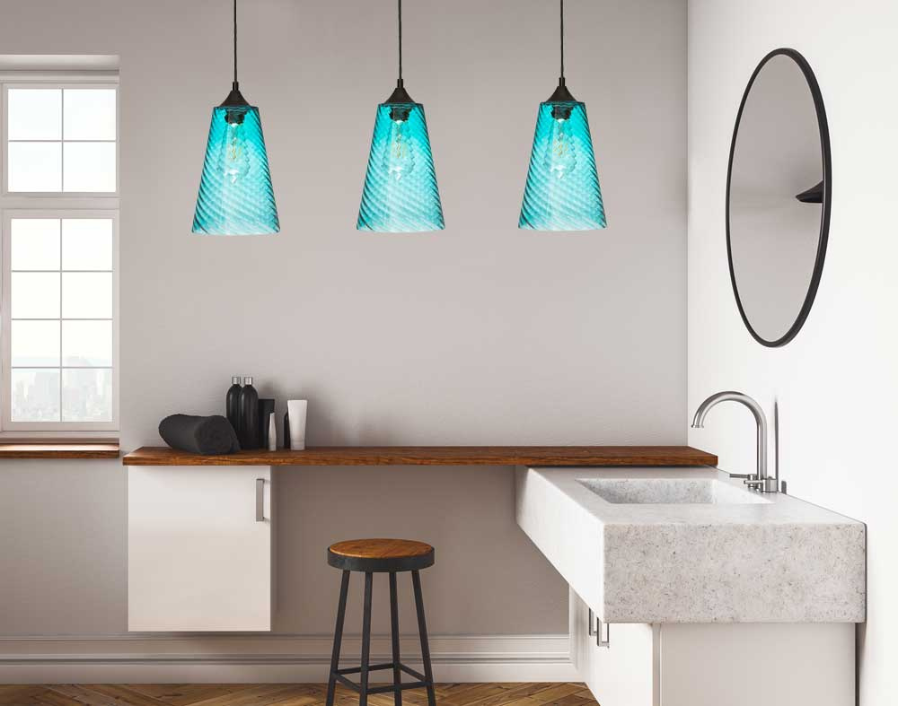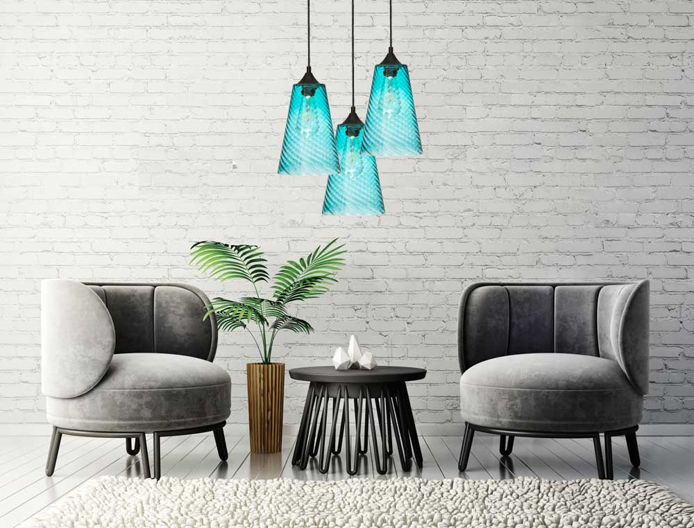 Lampa wisząca szklana niebieska stożek VELA