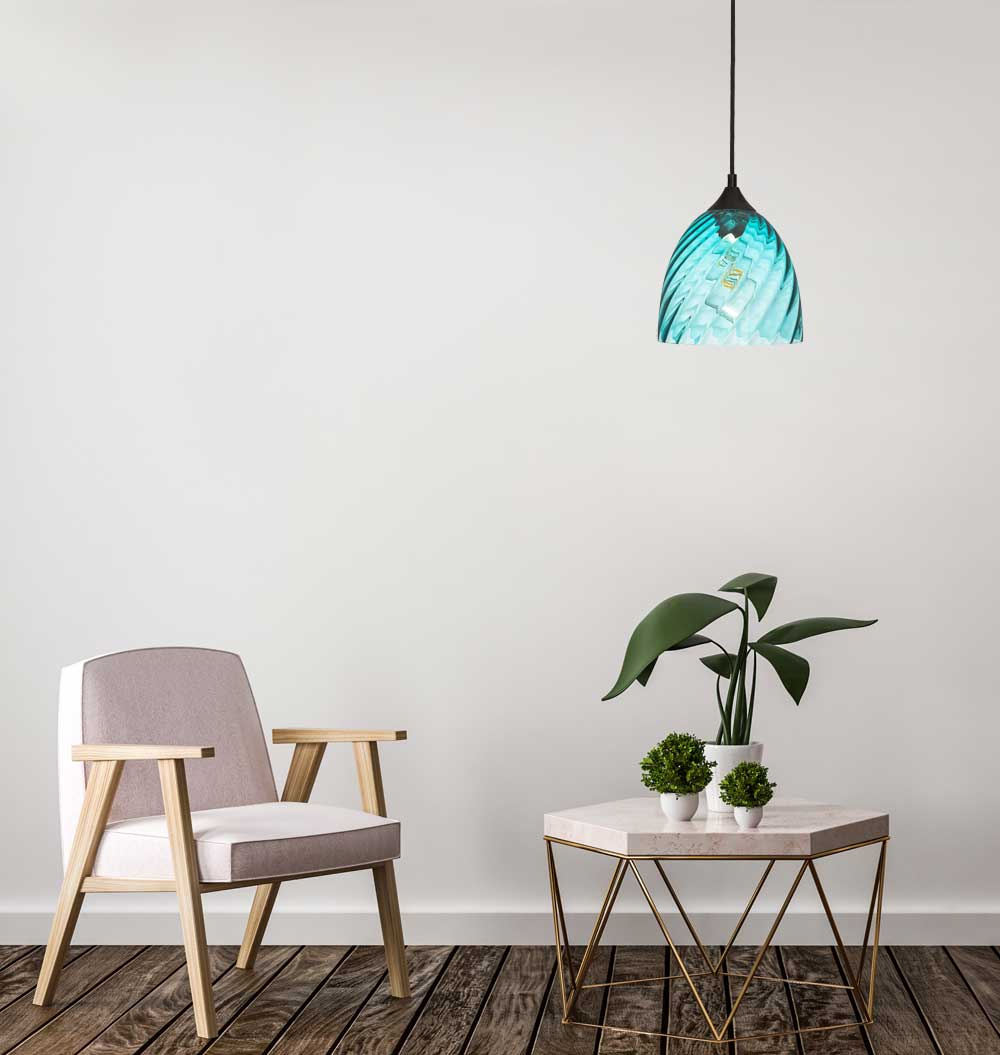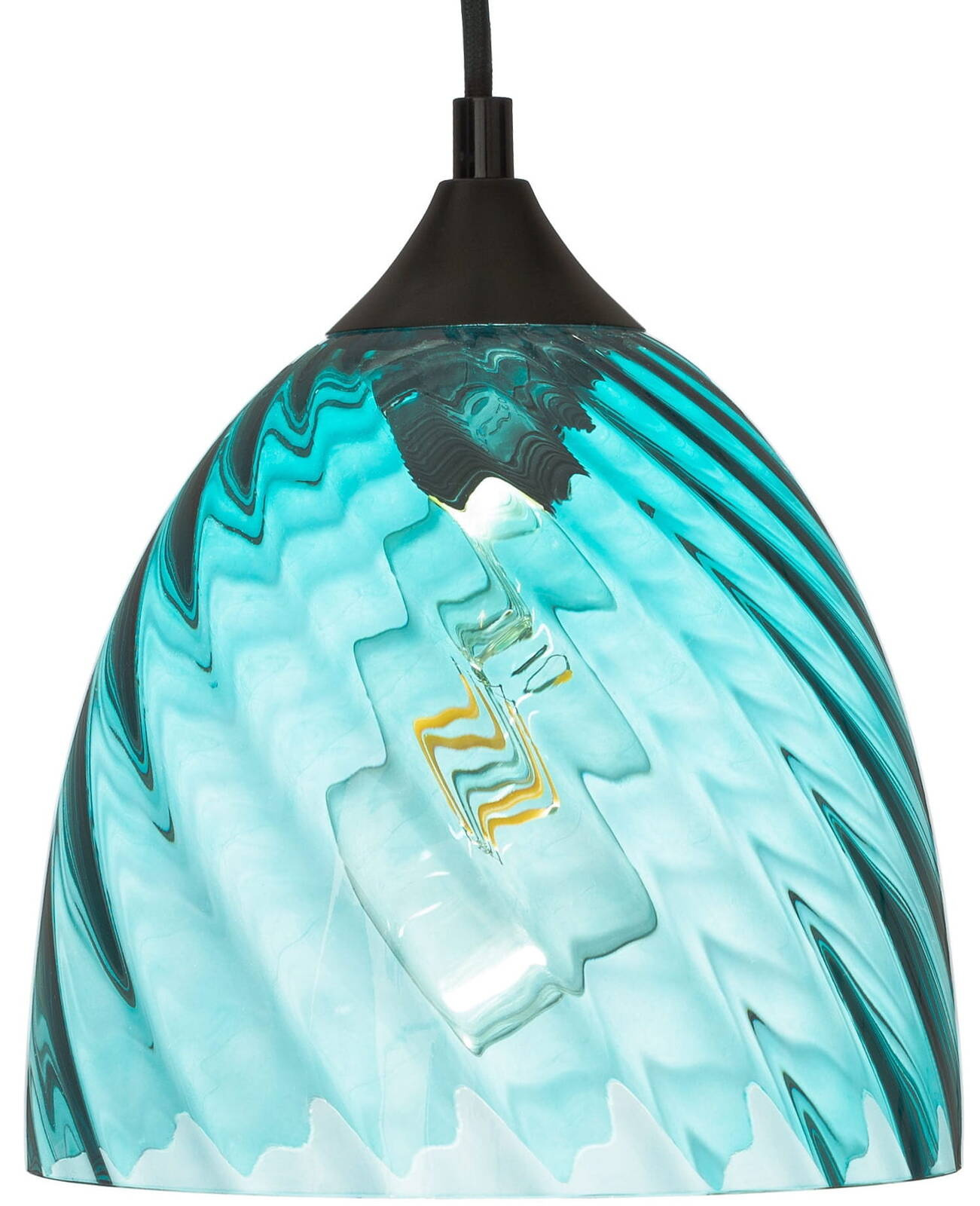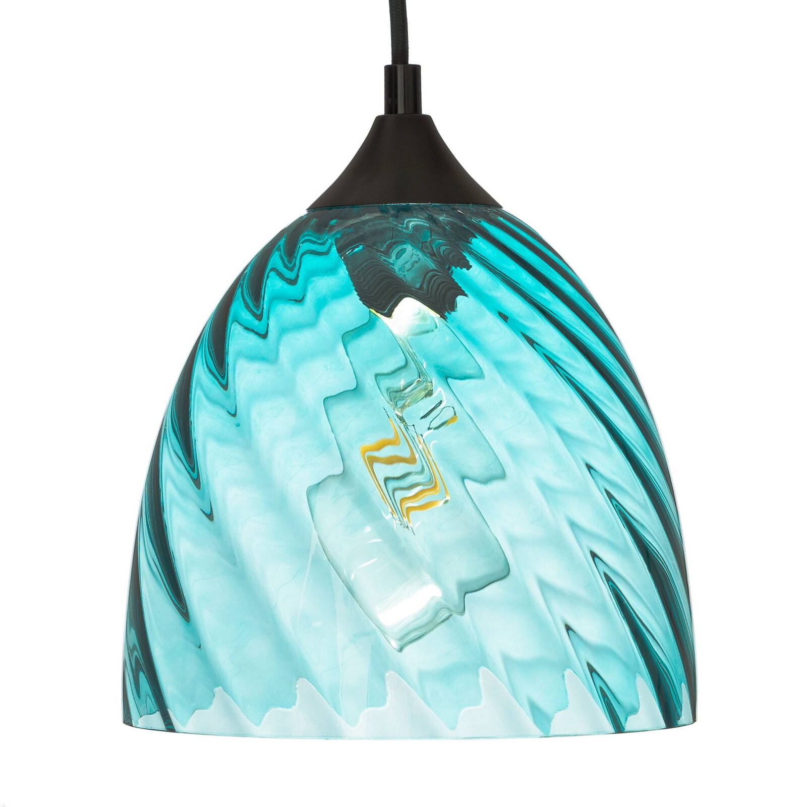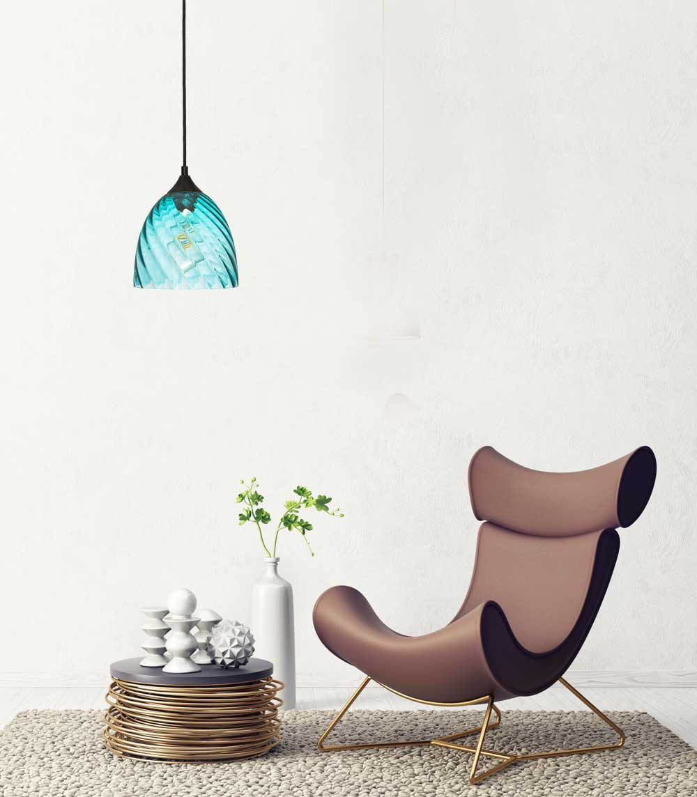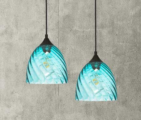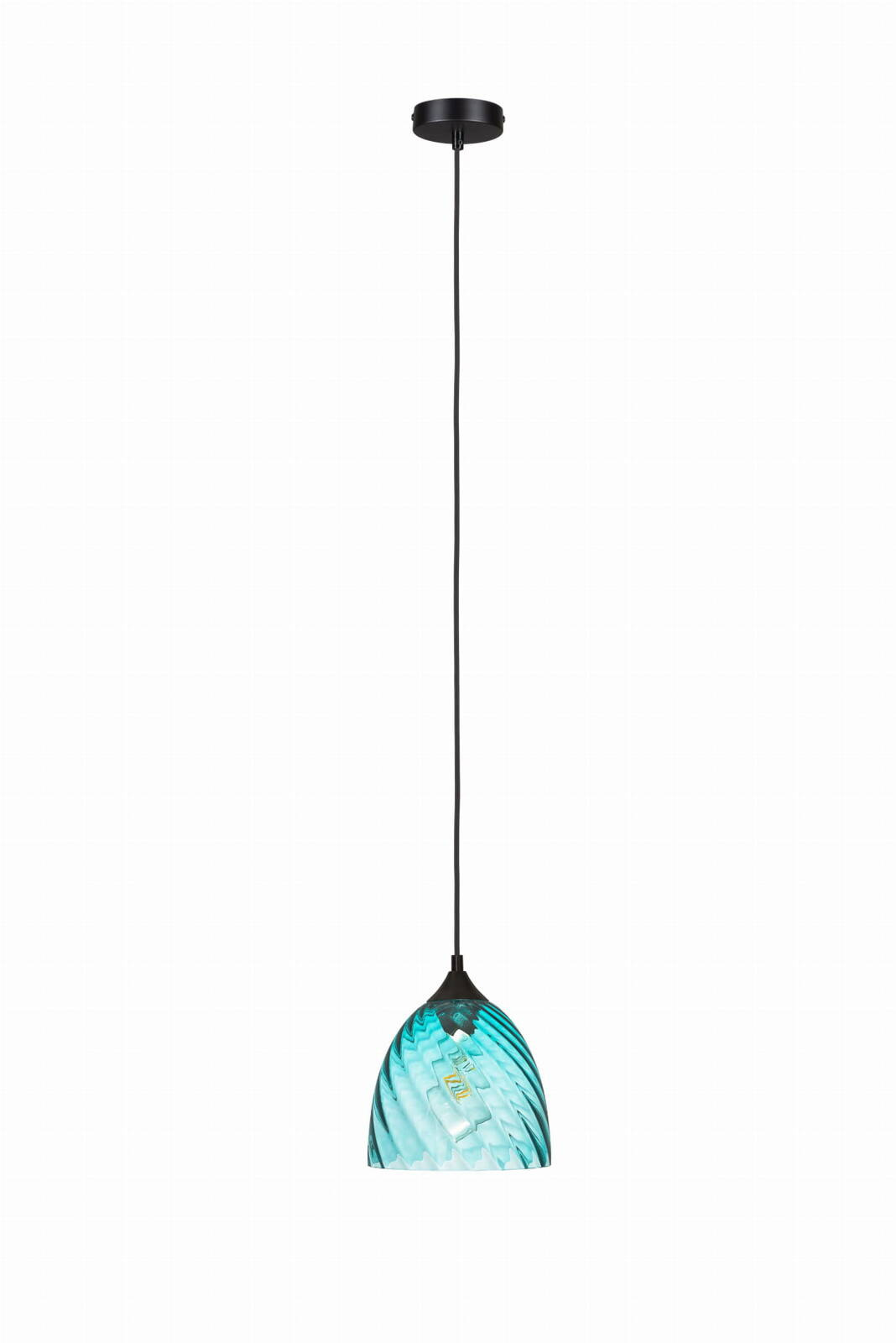 Lampa wisząca niebieska kopuła o niebieskim wybarwieniu szklanego klosza należy do oryginalnej serii VELA. Lampa posiada falistą strukturę szkła.