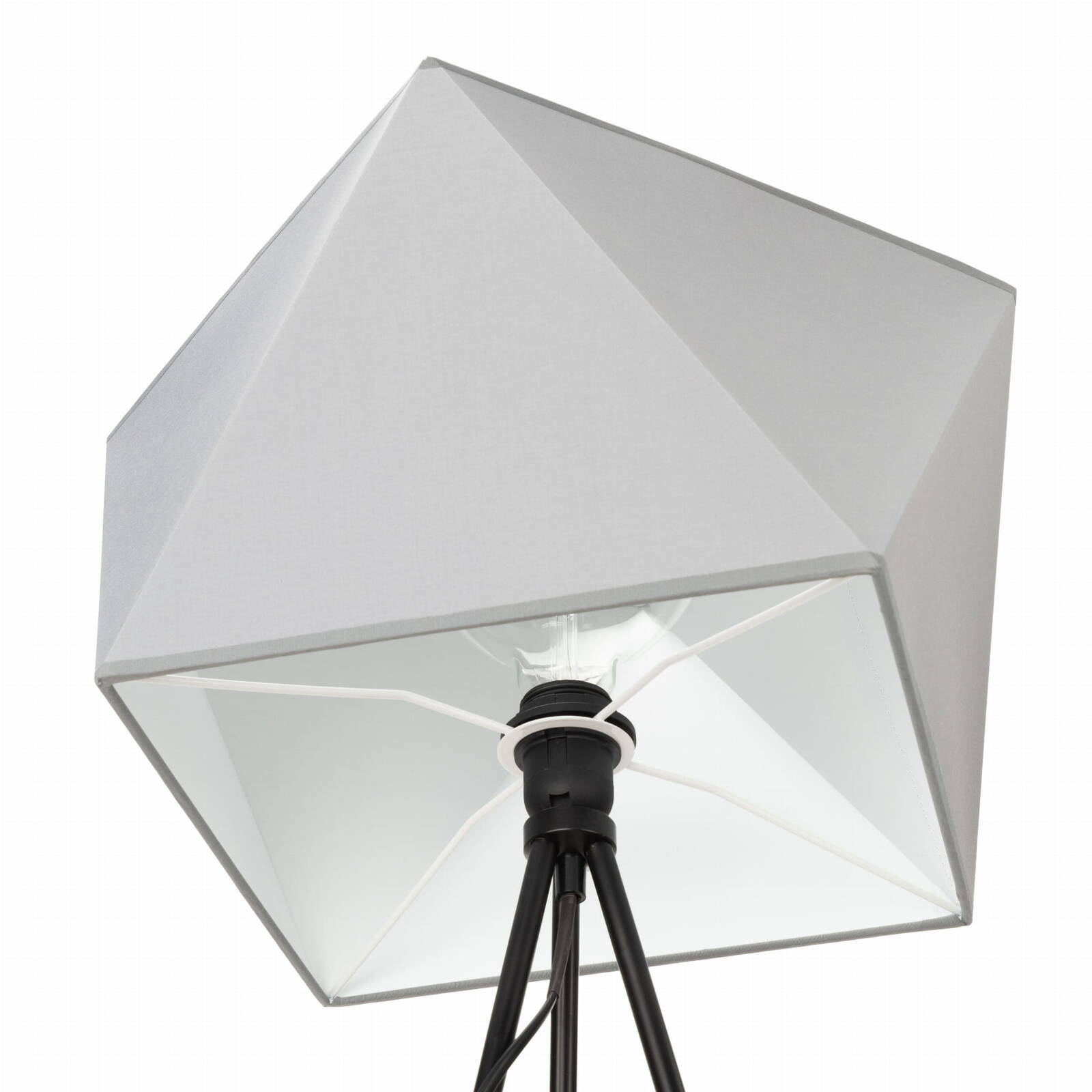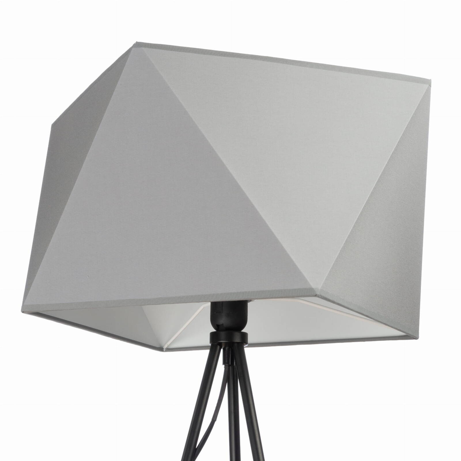 Lampa stojąca trójnóg black Neptun to piękna lampa o metalowym stelażu z szarym abażurem o geometrycznym kształcie diamentu. Abażur wykonany jest z tkaniny. Ta wysoka lampa świetnie sprawdzi się w salonie przy np. sofie ale także w sypialni a nawet pokoju dziecięcym. Lampę polecamy również do biura czy restauracji.