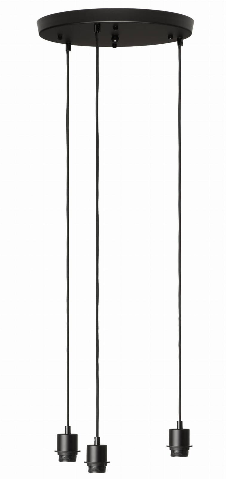 Plafon posiada trzy zawiesie na eleganckim kablu w oplocie zakończone oprawką na gwint E27. Każda z zawiesi ma możliwość regulacji wysokości zawieszenia. Polecamy klientom którzy celują w oryginalne wystroje wnętrz. Lubią nowoczesność w połączeniu z klasyką.