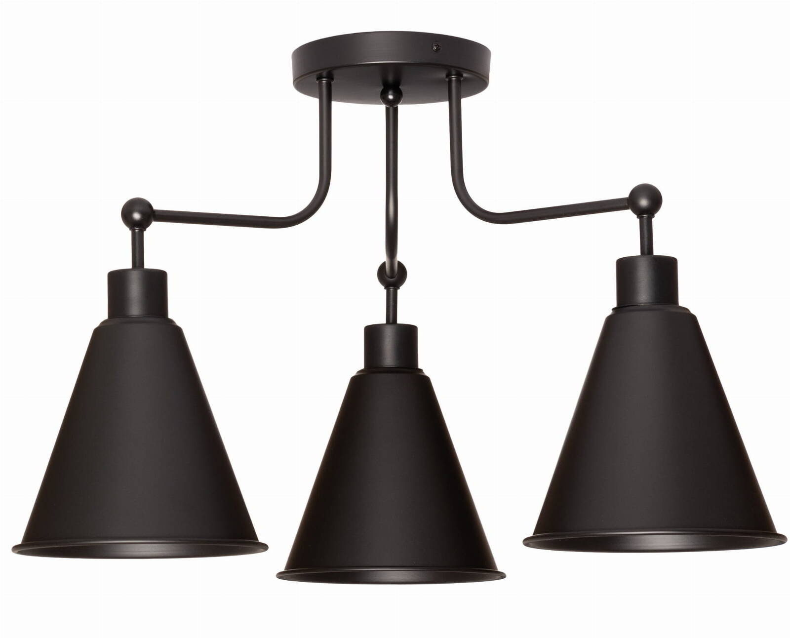 ,Lampa sufitowa żyrandol 3 klosze Stożek czarny
