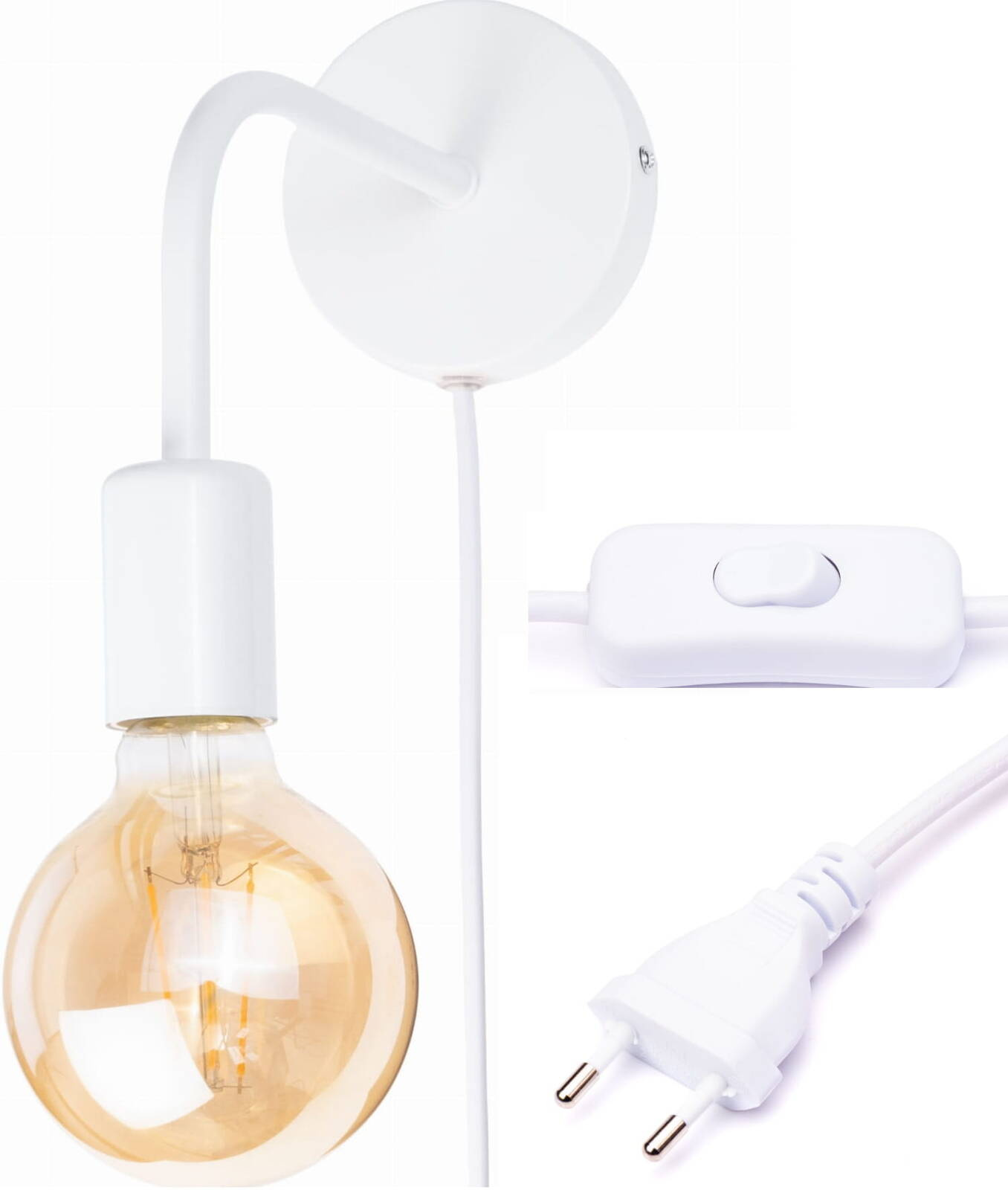 BIAŁY KINKIET TYPU LOFT Z KABLEM