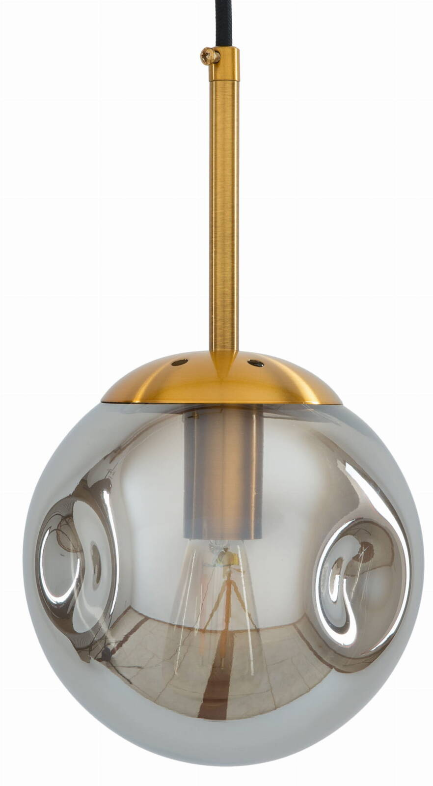 Zarówno oprawa jak i maskownica wykonane są z metalu w kolorze złota. Klosz posiada grafitowe wybarwienie szkła. Przewód lampy jest w estetycznym czarnym oplocie, który posiada możliwość regulacji wysokości.