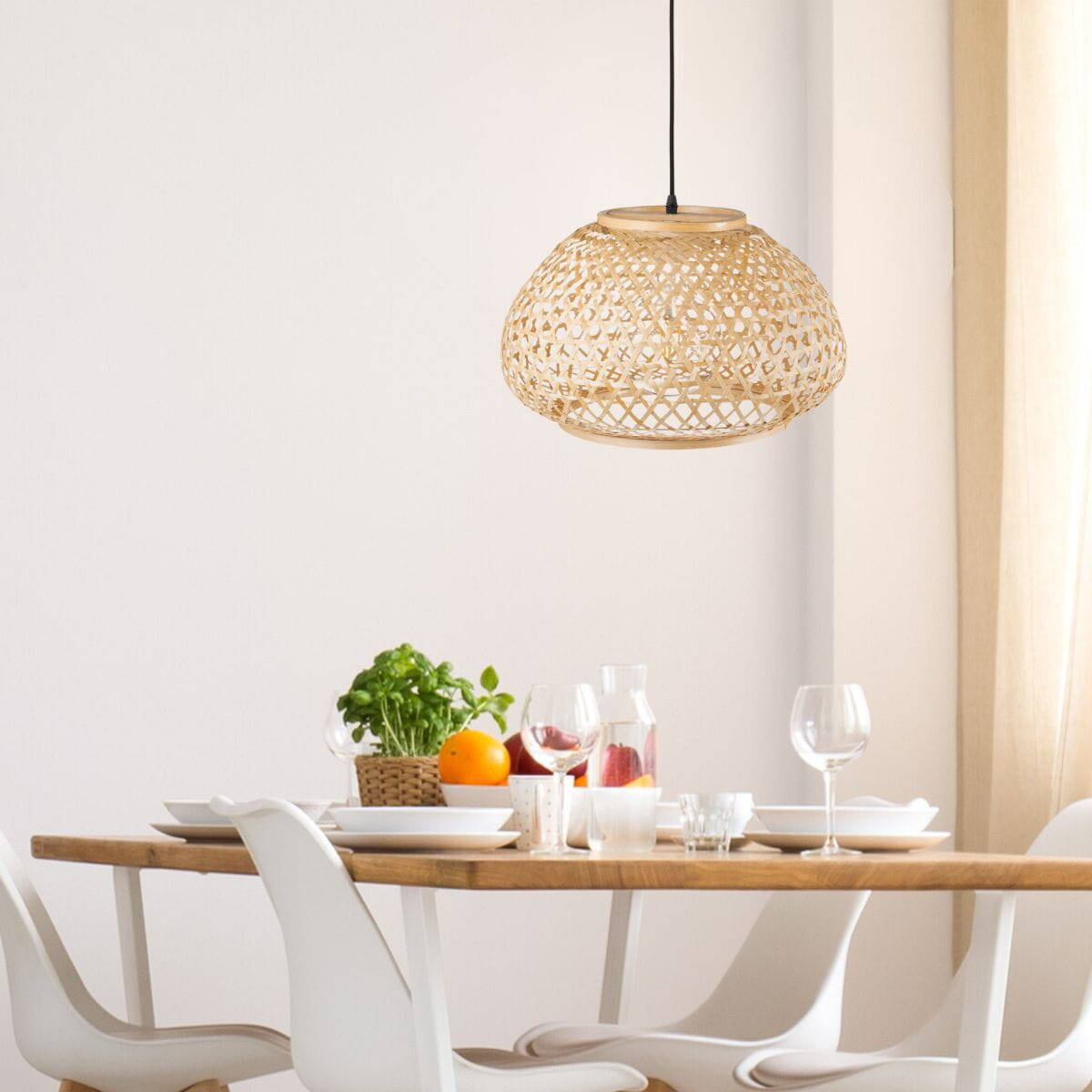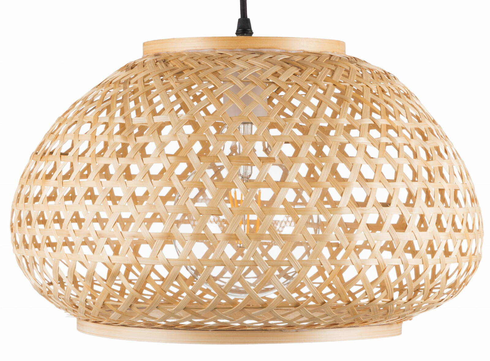 EKO DESIGN - klosz lampy jest ręcznie wykonany z bambusowej plecionki. Pięknie nawiązuje do natury. Ażurowa forma lampy pozwala przenikać światłu dzięki czemu lampa daje piękną poświatę. Nasz lampa świetnie wygląda umieszczona nad stołem w jadalni, nad sofą w salonie czy miejscem do pracy w domowym biurze.