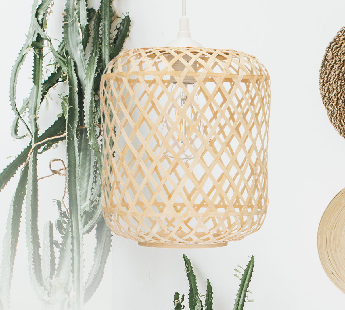 Jeśli chcesz stworzyć przytulne wnętrze o skandynawskim charakterze pomyśl o naszej lampie. Prezentowany model charakteryzuje się prostą formą i delikatnym ażurowym splotem. Światło w tej lampie będzie swobodnie rozpraszane dzięki bambusowej plecionce. Lampa wisząca tworzy klimatyczne wnętrze poprzez połączenie dwóch lub trzech sztuk obok siebie.