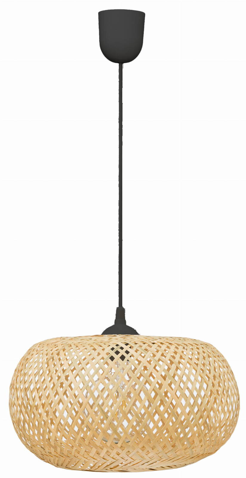 Klosz lampy został ręcznie wykonany z autentycznego drewna bambusowego. Czarny kabel nadaje estetycznego charakteru.