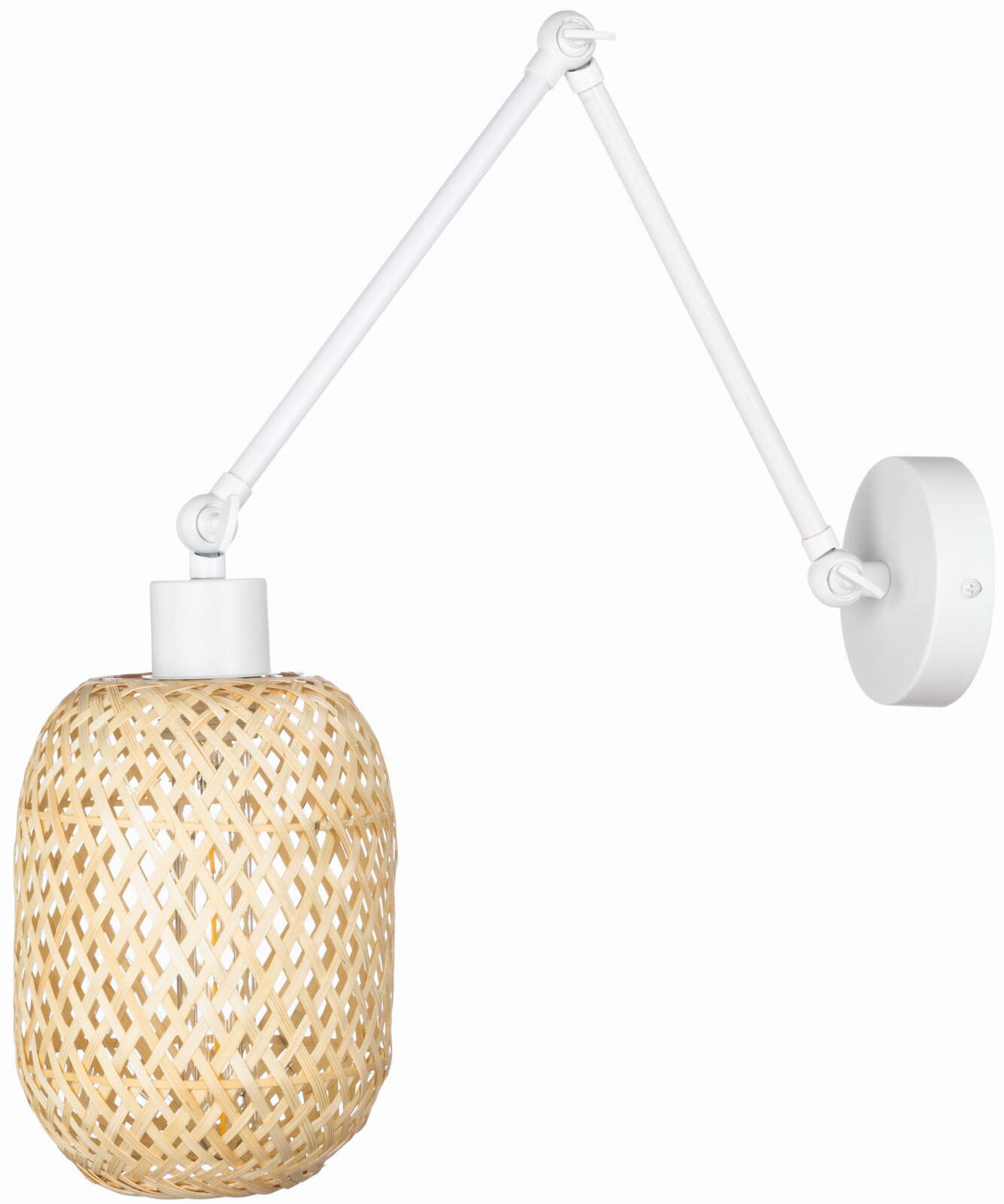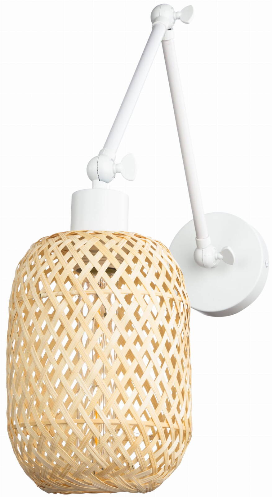 Kinkiet regulowany metalowy biały klosz bambusowy