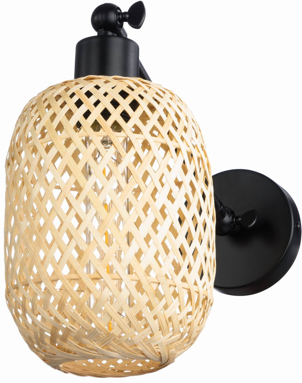 ,Kinkiet regulowany metalowy czarny klosz długi bambus