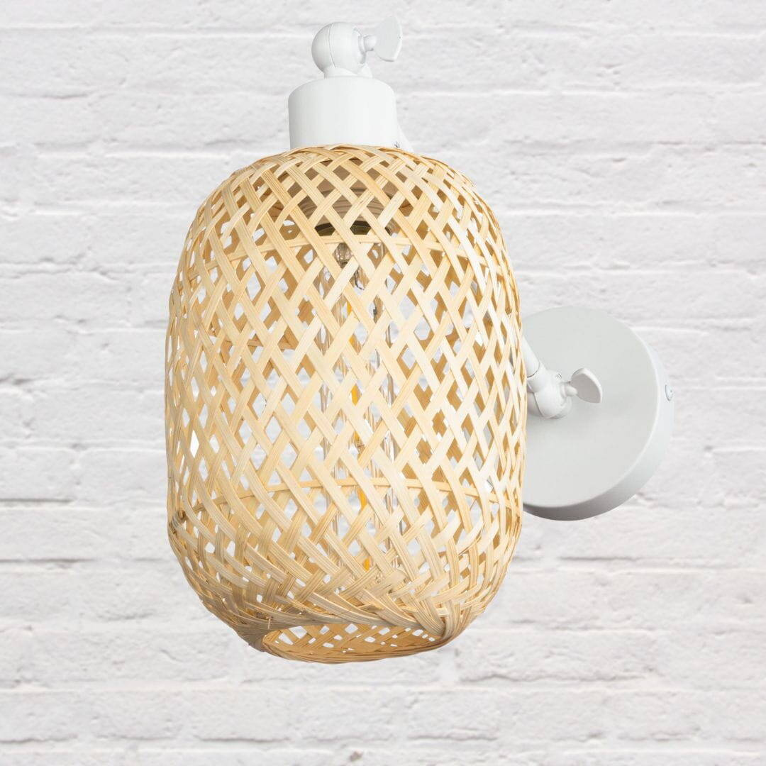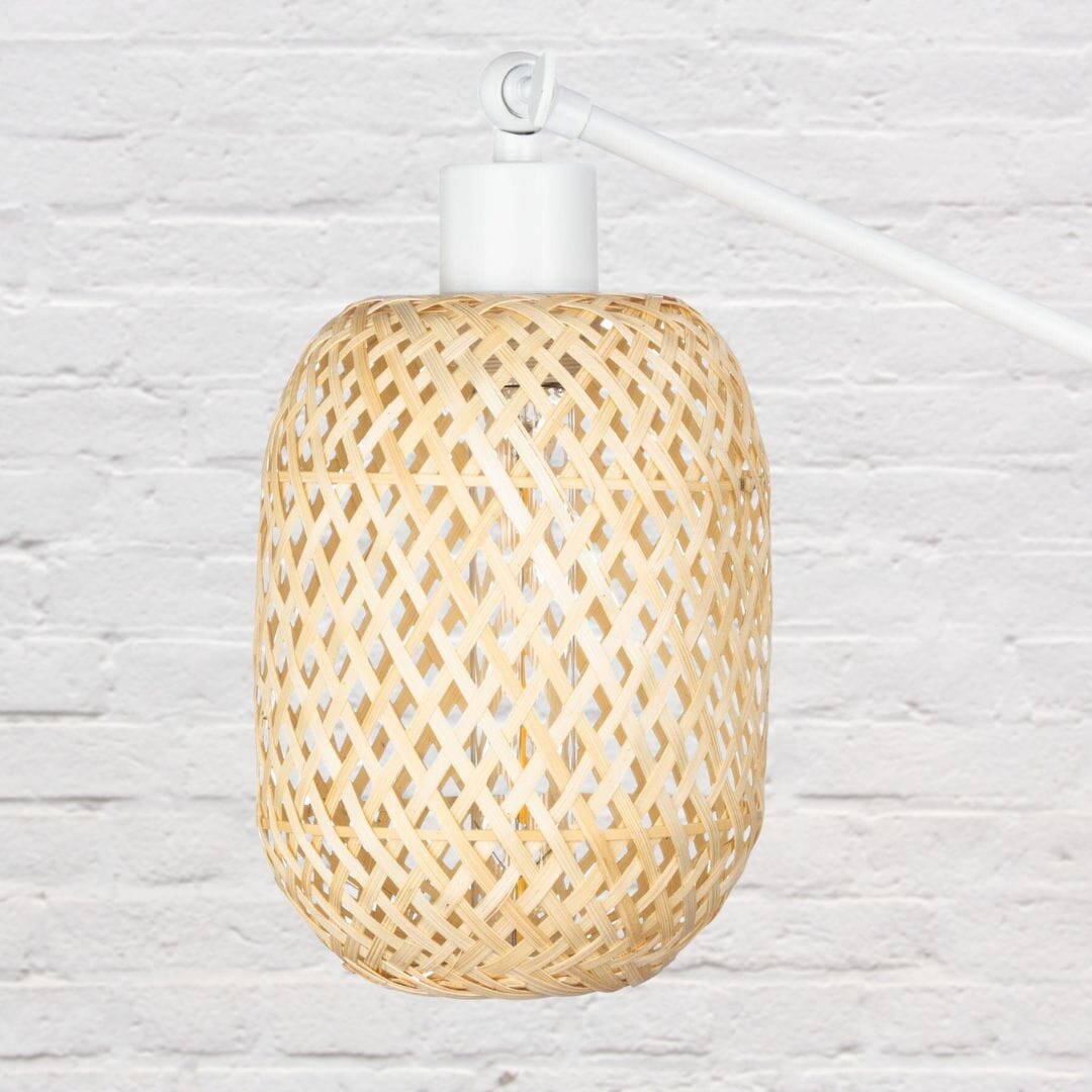 ,Kinkiet regulowany metalowy biały klosz duży bambus