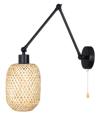 Kinkiet regulowany metalowy czarny klosz bambusowy