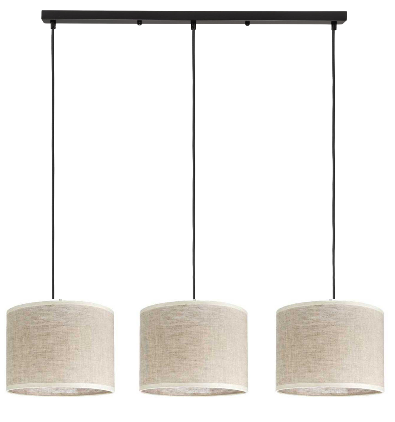 Lampa została zaprojektowana w duchu minimalizmu. Prosta forma stalowej belki i abażurów nadaje lampie lekkości i charakteru. Lniane abażury olśnią każde pomieszczenie w twoim domu. Lampa idealnie wpisuje się w loftowe stylizacje nowoczesnych, oraz inspirowanych naturą wnętrz. Każda z trzech zawiesi posiada możliwość indywidualnej regulacji wysokości.