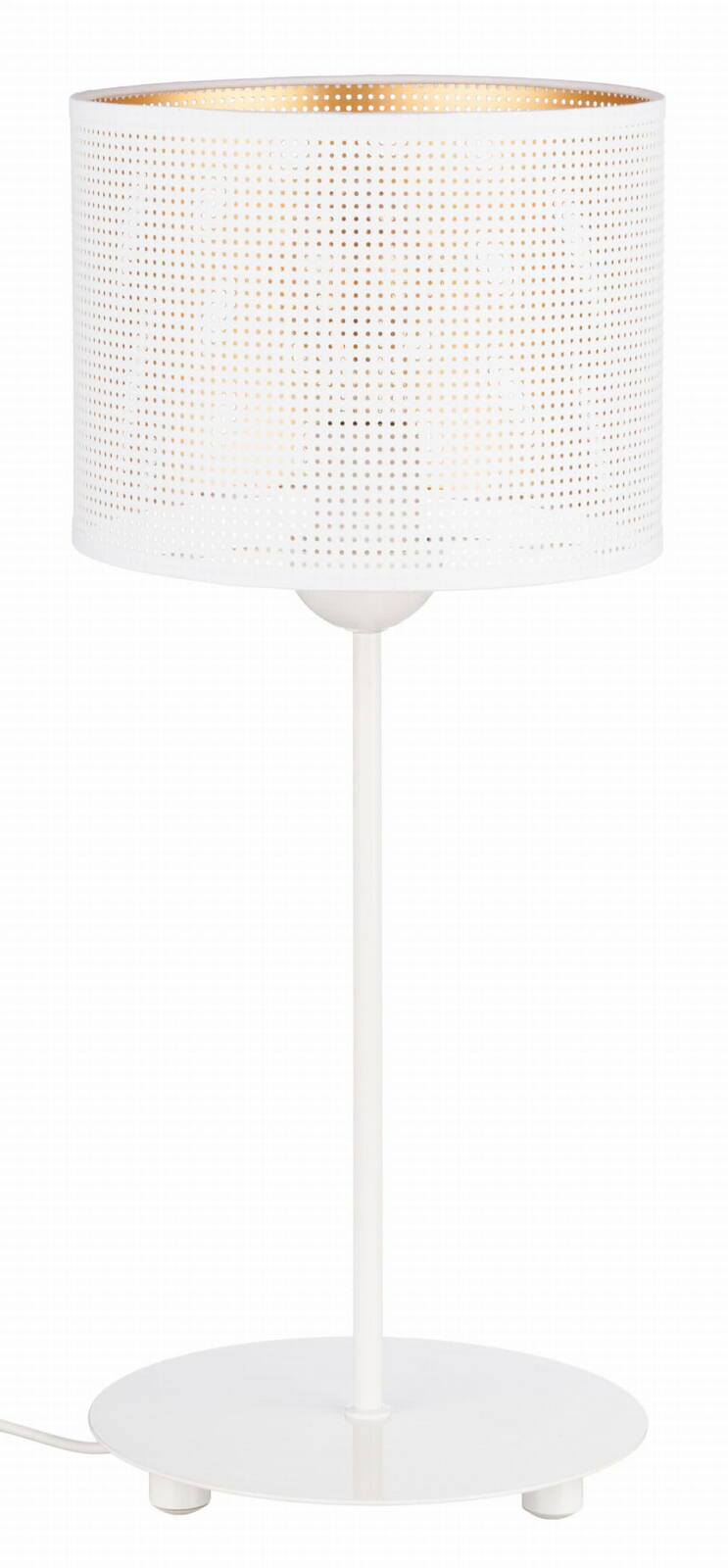 LAMPKA STOJĄCA Z BIAŁYM AŻUROWYM ABAŻUREM W KSZTAŁCIE WALCA