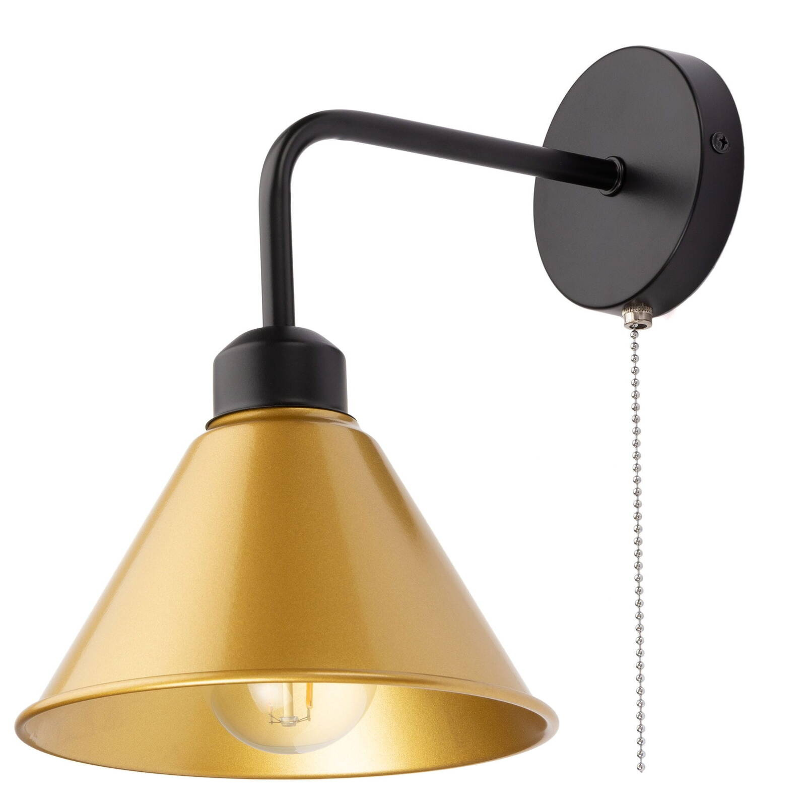 Kinkiet ścienny czarny włącznik on/off złoty mały stożek