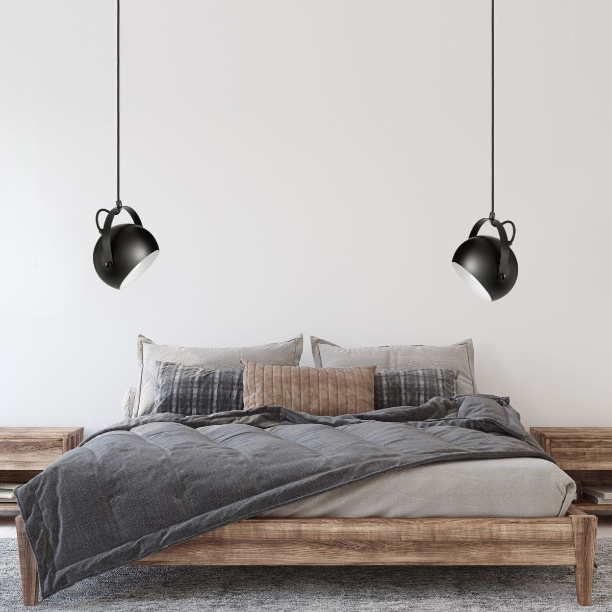 Wyszukana estetyka - satynowa czerń, biały środek i uchwyt sprawiają że lampa wygląda designersko.