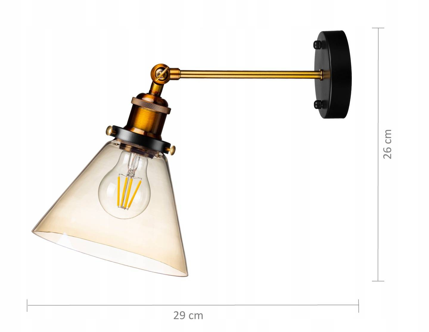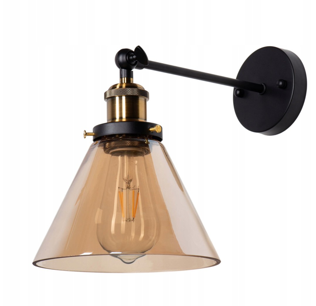 Szklany bursztynowy regulowany kinkiet E27 Loft złoty